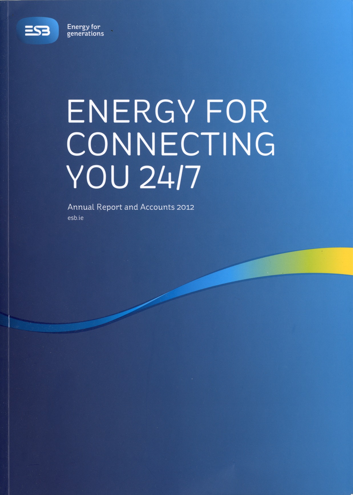 | Company Name: | ESB  | | Company Web Site: | www.esb.ie | | Annual Revenue: | $1 - $10 billion | | Employee Base: | 1,000 - 10,000 Employees | | Core Industry: | Utilities – Electric | | Type of Report: | Annual Report | | Title/Theme: | "Energy for Connecting You 24/7" | | Industry Award Garnered: | Platinum | | Top 100 Worldwide Rank: | 42 | | | | Judging Results | | First Impression: | | | Report Cover: | | | Letter to Shareholders: | | | Report Narrative: | | | Report Financials: | | | Creativity: | | | Message Clarity: | | | Information Accessibility: | | | Total Score: | |
