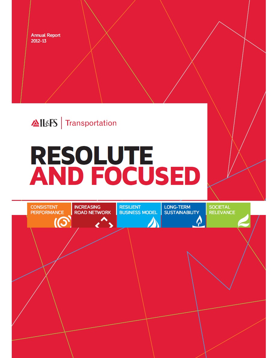 | Company/Agency Name: | IL&FS Transportation Networks Limited / Atherstone Investor Communications | | Company/Agency Web Site: | www.itnlindia.com / www.aicl.in | | Annual Revenue: | $100 million - $1 billion | | Employee Base: | 100 - 1,000 Employees | | Core Industry: | Transportation & Logistics | | Type of Report: | Annual Report | | Title/Theme: | "Resolute and Focused" | | Industry Award Garnered: | Platinum | | Top 100 Worldwide Rank: | 6 | | | | Judging Results | | First Impression: | | | Report Cover: | | | Letter to Shareholders: | | | Report Narrative: | | | Report Financials: | | | Creativity: | | | Message Clarity: | | | Information Accessibility: | | | Total Score: | |
