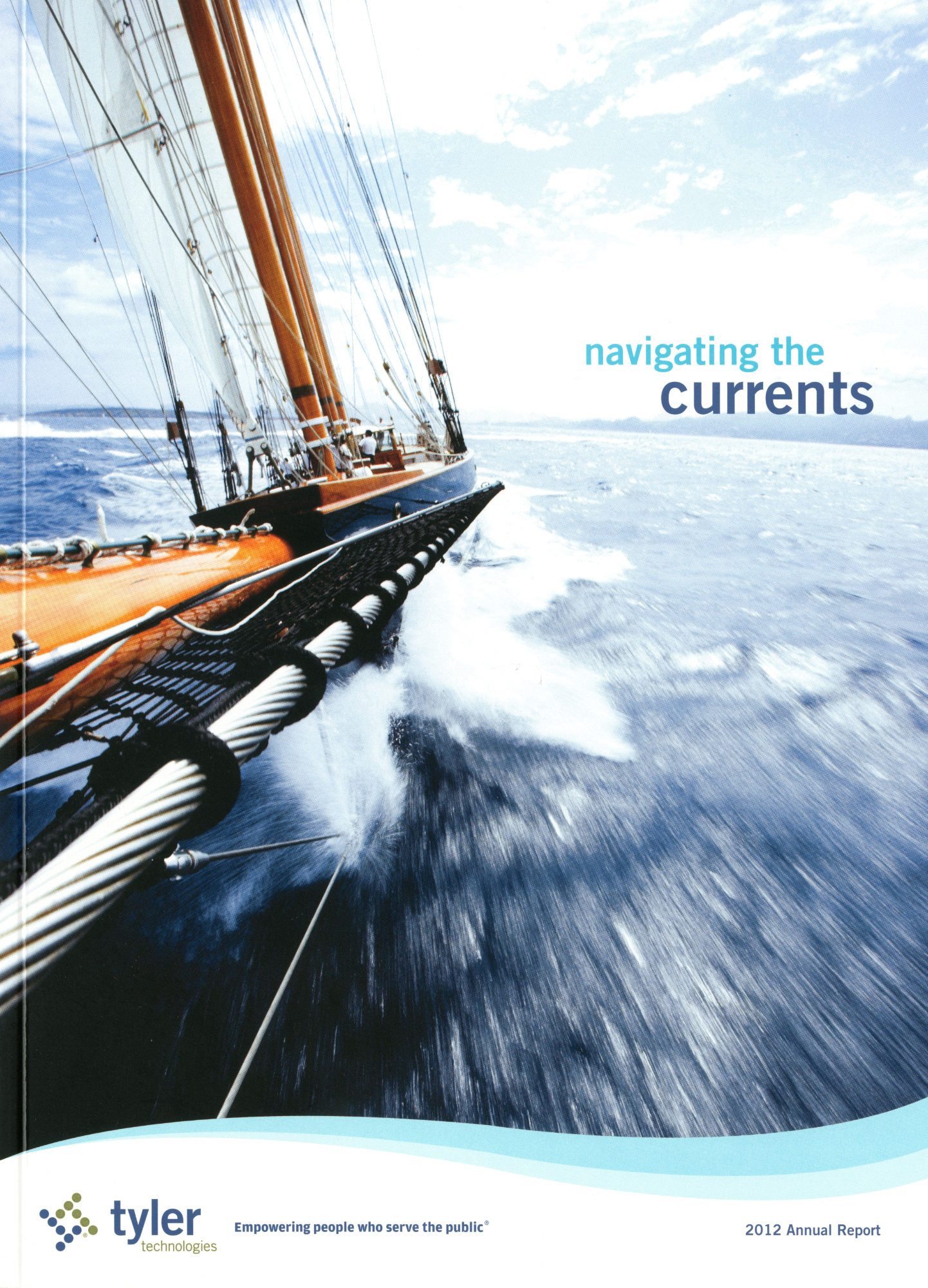| Company/Agency Name: | Tyler Technologies / Eisenberg And Associates | | Company/Agency Web Site: | www.tylertech.com / www.eisenberginc.com | | Annual Revenue: | $100 million - $1 billion | | Employee Base: | 1,000 - 10,000 Employees | | Core Industry: | Technology — I.T. Services | | Type of Report: | Annual Report | | Title/Theme: | "Navigating the Currents" | | Industry Award Garnered: | Bronze | | | | Judging Results | | First Impression: | | | Report Cover: | | | Letter to Shareholders: | | | Report Narrative: | | | Report Financials: | | | Creativity: | | | Message Clarity: | | | Information Accessibility: | | | Total Score: | |