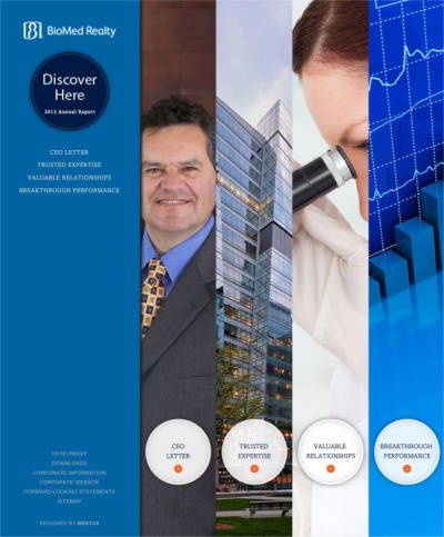 Company/Agency Web Site:annualreport2012.biomedrealty.com  /  www.mentus.com