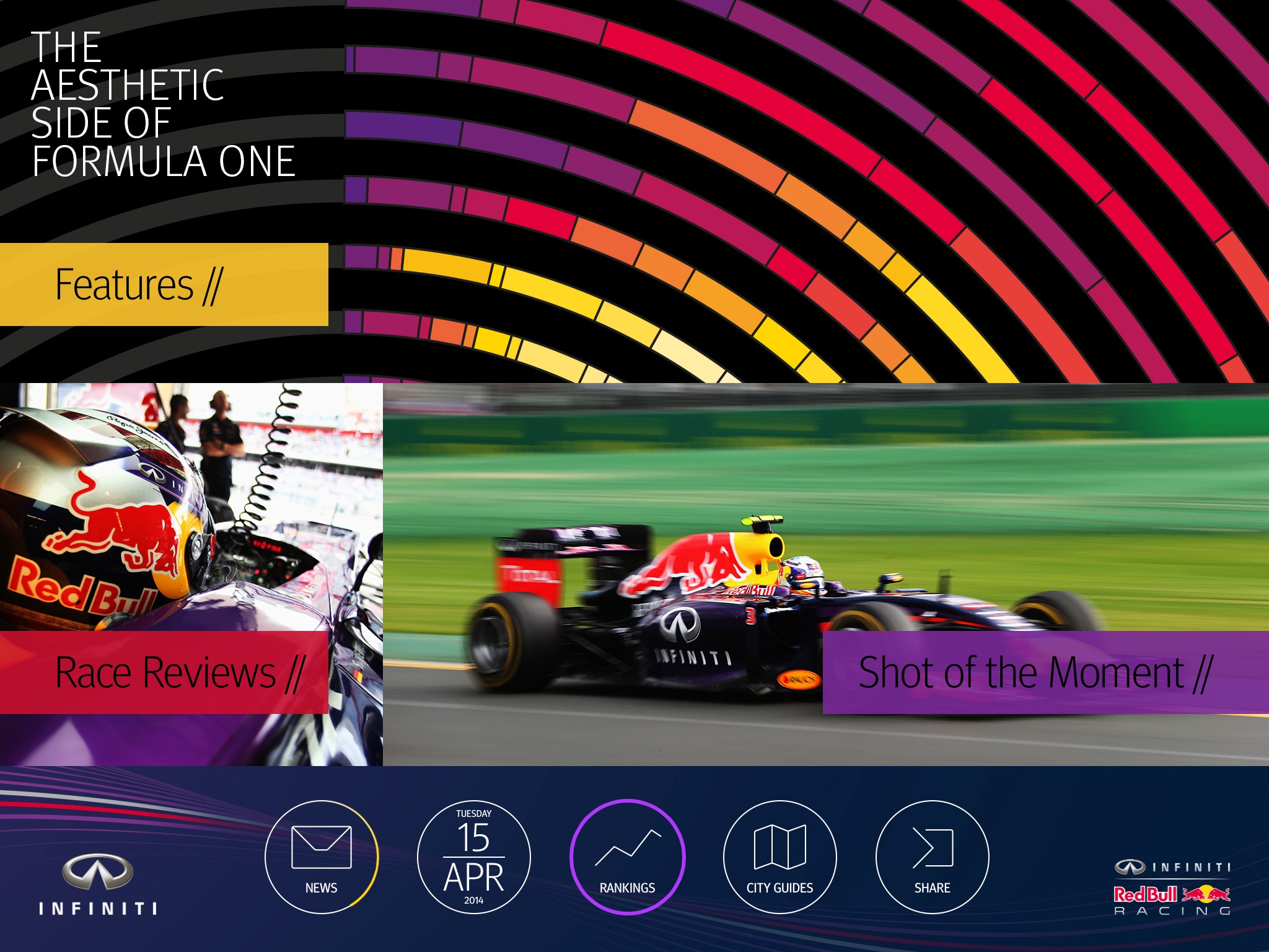 Entry Highlights: View Competition Class Performance | Company/Agency Name: | Infiniti Europe  / koeckritzdoerrich Brand & Corporate GmbH | | Company/Agency Web Site: | www.infiniti.eu / www.kdgroup.com | | Project Name: | The Infiniti GP iPad App | | Competition Category: | Other: Other (Describe Under 'Special Instructions') | | Annual Revenue: | $10+ billion | | Employee Base: | 1,000 - 10,000 Employees | | Award Garnered: | Gold | | | | Judging Results | | First Impression: | | | Overall Narrative: | | | Overall Visual Design: | | | Creativity: | | | Message Clarity: | | | Perceived Relevance: | | | Total Score: | |