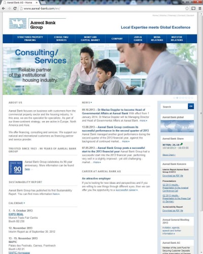 Entry Highlights: View Competition Class Performance | Company/Agency Name: | Aareal Bank AG  / NetFederation GmbH | | Company/Agency Web Site: | www.aareal-bank.com/en/ / www.net-federation.de/ | | Project Name: | "Website Facelift – Aareal Bank Group" | | Competition Category: | Digital: Web/Intranet Site (List Under 'Special Instructions') | | Annual Revenue: | $100 million - $1 billion | | Employee Base: | 1,000 - 10,000 Employees | | Award Garnered: | Silver | | | | Judging Results | | First Impression: | | | Overall Narrative: | | | Overall Visual Design: | | | Creativity: | | | Message Clarity: | | | Perceived Relevance: | | | Total Score: | |