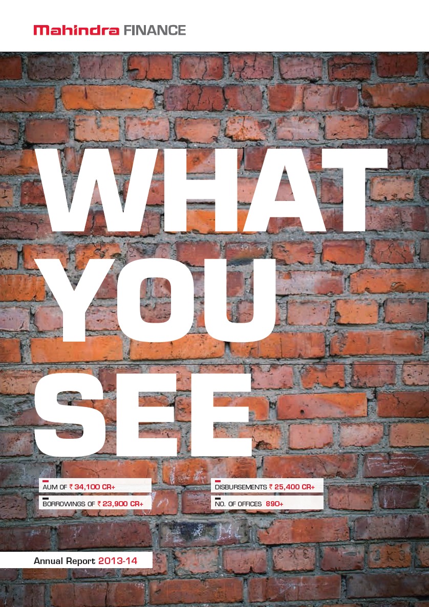 | Company/Agency Name: | Mahindra & Mahindra Financial Services Limited / AICL Communications Limited | | Company/Agency Web Site: | www.mahindrafinance.com / www.aicl.in | | Annual Revenue: | $100 million - $1 billion | | Employee Base: | 10,000+ Employees | | Core Industry: | Financials -- Diversified Services | | Type of Report: | Annual Report | | Title/Theme: | "What You See | What You Don't" | | Industry Award Garnered: | Platinum | | Top 50 Worldwide Rank: | 14 | | | | Judging Results | | First Impression: | | | Report Cover: | | | Letter to Shareholders: | | | Report Narrative: | | | Report Financials: | | | Creativity: | | | Message Clarity: | | | Information Accessibility: | | | Total Score: | |