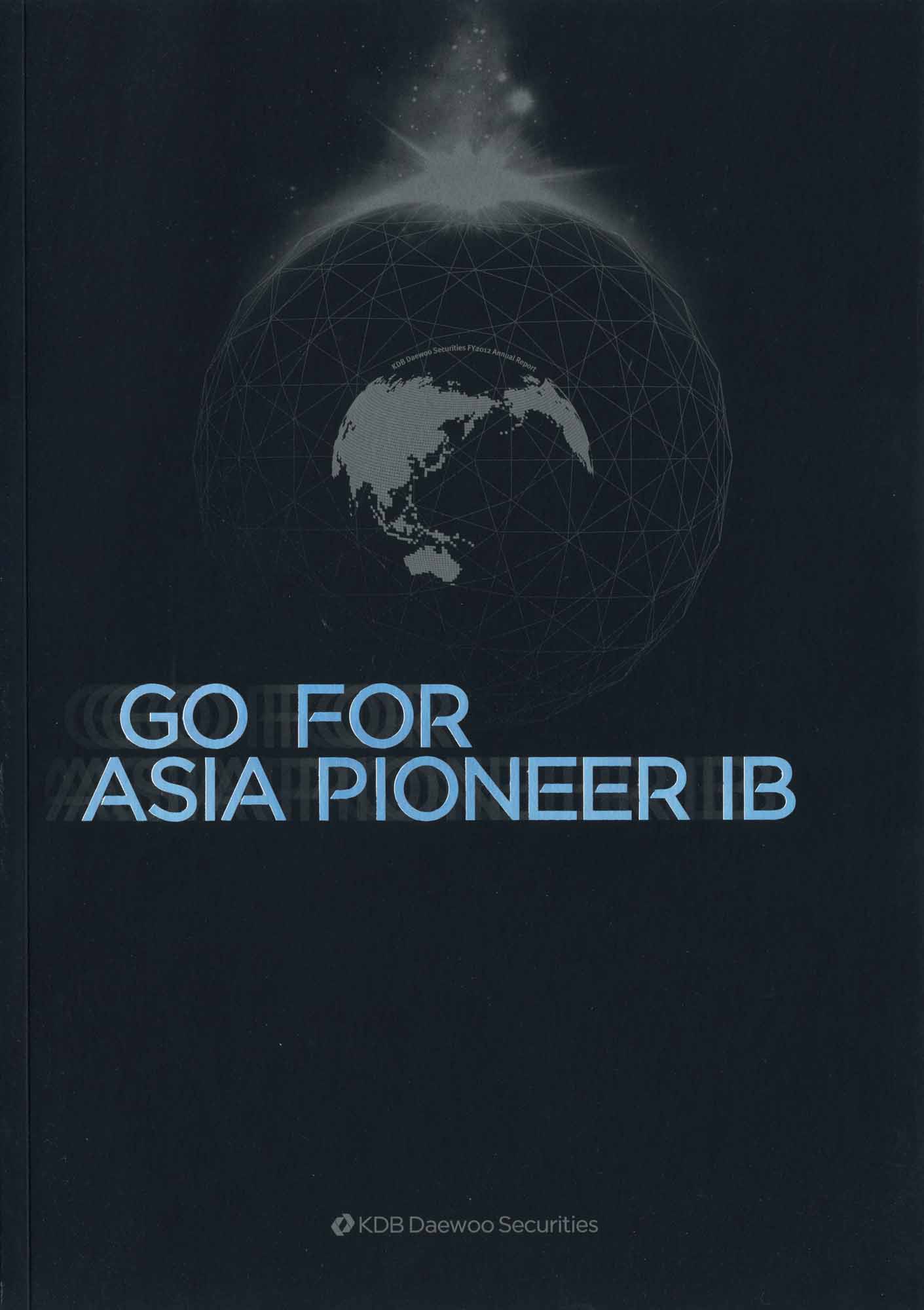 Entry Highlights: View Competition Class Performance | Company/Agency Name: | KDB Daewoo Securities  / IR KUDOS | | Company/Agency Web Site: | www.kdbdw.com / www.irkudos.co.kr | | Project Name: | "Go for Asia Pioneer IB" | | Competition Category: | Print: Annual Report | | Annual Revenue: | $1 - $10 billion | | Employee Base: | 1,000 - 10,000 Employees | | Award Garnered: | Silver | | | | Judging Results | | First Impression: | | | Overall Narrative: | | | Overall Visual Design: | | | Creativity: | | | Message Clarity: | | | Perceived Relevance: | | | Total Score: | |