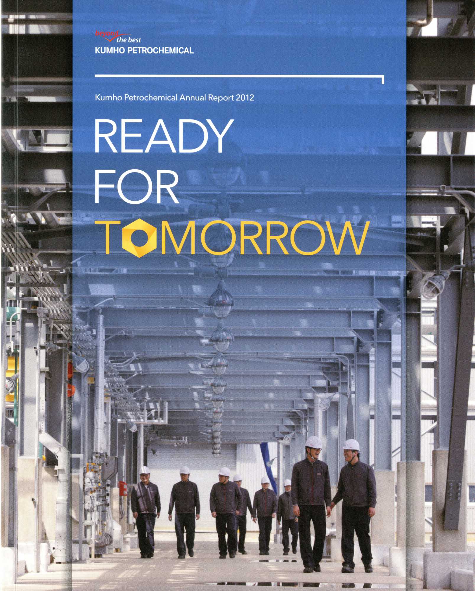 Entry Highlights: View Competition Class Performance | Company/Agency Name: | KKPC (Kumho Petrochemical)  / INTONATION | | Company/Agency Web Site: | www.kkpc.com / www.intonation.kr | | Project Name: | "Ready for Tomorrow" – KKPC Annual Report 2012 | | Competition Category: | Print: Annual Report | | Annual Revenue: | $1 - $10 billion | | Employee Base: | 1,000 - 10,000 Employees | | Award Garnered: | Gold | | Top 100 Rank: | 40 | | | | Judging Results | | First Impression: | | | Overall Narrative: | | | Overall Visual Design: | | | Creativity: | | | Message Clarity: | | | Perceived Relevance: | | | Total Score: | |
