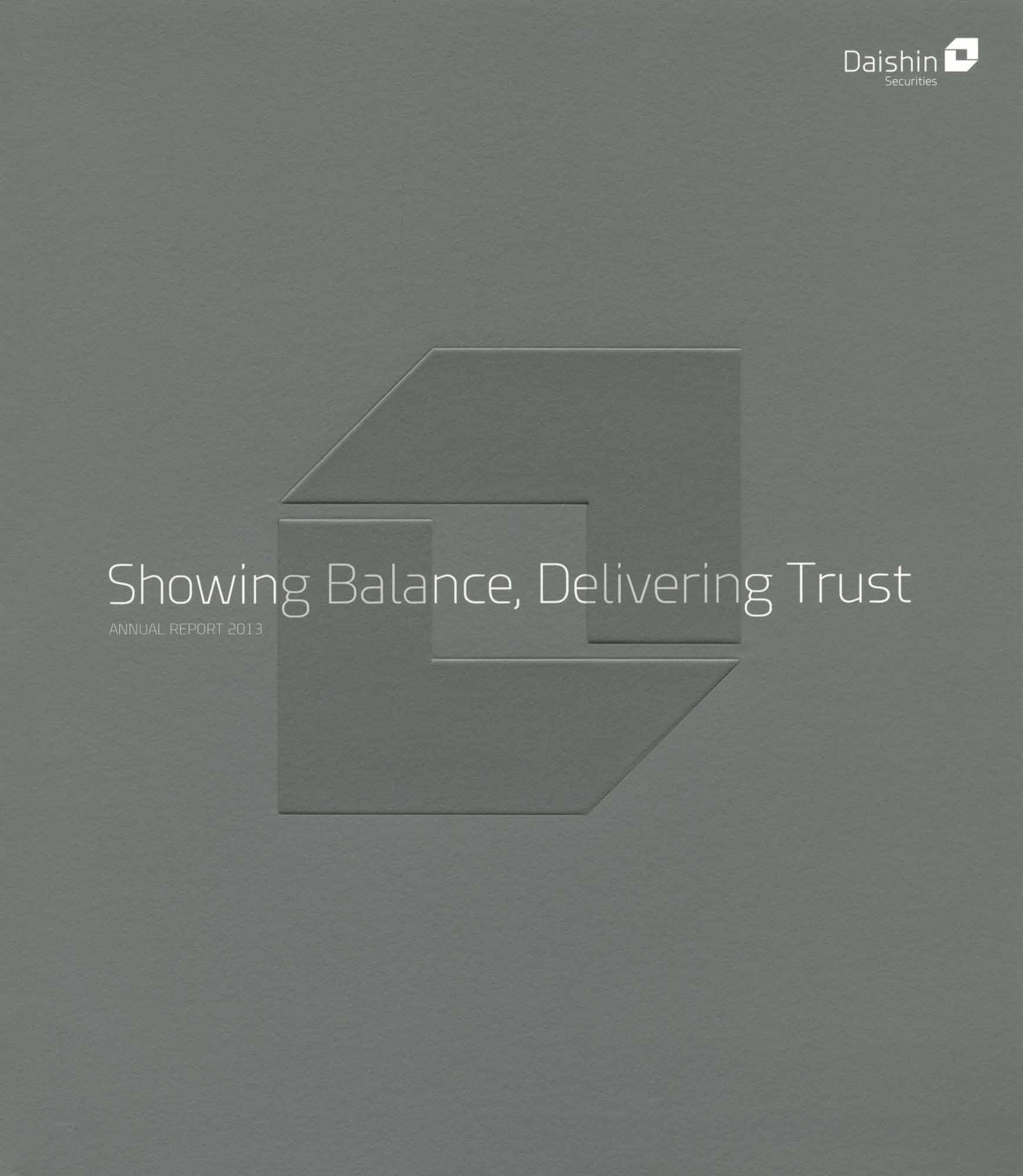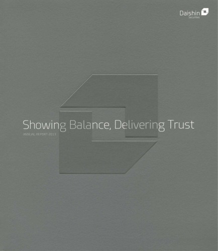 Entry Highlights: View Competition Class Performance | Company/Agency Name: | Daishin Securities  / IR KUDOS | | Company/Agency Web Site: | www.daishin.co.kr / www.irkudos.co.kr | | Project Name: | "Showing Balance, Delivering Trust" | | Competition Category: | Print: Annual Report | | Annual Revenue: | $1 - $10 billion | | Employee Base: | 1,000 - 10,000 Employees | | Award Garnered: | Gold | | Top 100 Rank: | 76 | | | | Judging Results | | First Impression: | | | Overall Narrative: | | | Overall Visual Design: | | | Creativity: | | | Message Clarity: | | | Perceived Relevance: | | | Total Score: | |