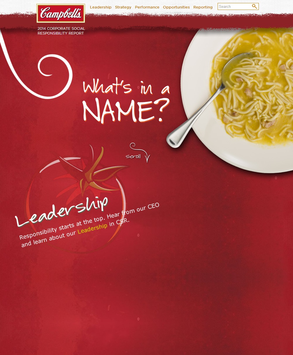 | Company/Agency Name: | Campbell Soup Company / Corporate Reports, Inc. | | Company/Agency Web Site: | www.campbellsoupcompany.com / www.corporatereport.com | | Annual Revenue: | $1 - $10 billion | | Employee Base: | 1,000 - 10,000 Employees | | Core Industry: | Consumer Consumables – Food/Beverages/Tobacco | | Type of Report: | CSR/Corporate Responsibility Report | | Title/Theme: | The Campbell Soup Company 2013 Corporate Responsibility Report – "What's in a Name" | | Regional Top 80 Rank: | 42 (Americas Region) | | Country-Based Honors: | Top 50 American Reports | | Industry Award Garnered: | Gold | | | | Judging Results | | First Impression: | | | Report Cover: | | | Letter to Shareholders: | | | Report Narrative: | | | Report Financials: | | | Creativity: | | | Message Clarity: | | | Information Accessibility: | | | Total Score: | |