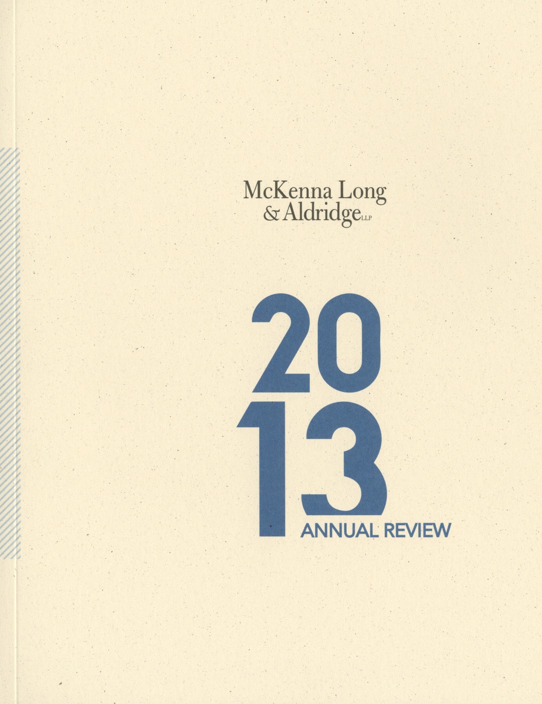 | Company Name: | McKenna Long & Aldridge LLP  | | Company Web Site: | www.mckennalong.com | | Annual Revenue: | $100 million - $1 billion | | Employee Base: | 1,000 - 10,000 Employees | | Core Industry: | Business Services | | Type of Report: | Annual Report | | Title/Theme: | The McKenna Long & Aldridge 2013 Annual Review | | Industry Award Garnered: | Silver | | | | Judging Results | | First Impression: | | | Report Cover: | | | Letter to Shareholders: | | | Report Narrative: | | | Report Financials: | | | Creativity: | | | Message Clarity: | | | Information Accessibility: | | | Total Score: | |