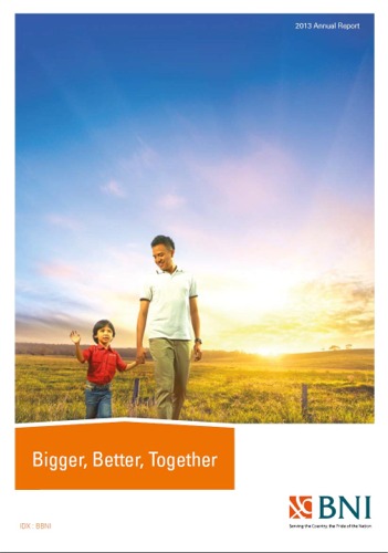 | Company Name: | PT Bank Negara Indonesia (Persero) Tbk  | | Company Web Site: | www.bni.co.id | | Annual Revenue: | $10+ billion | | Employee Base: | 10,000+ Employees | | Core Industry: | Banks – Commercial | | Type of Report: | Annual Report | | Title/Theme: | "Bigger, Better, Together" | | Regional Top 80 Rank: | 7 (Asia-Pacific Region) | | Country-Based Honors: | Top 10 Indonesian Reports | | Industry Award Garnered: | Platinum | | Top 100 Worldwide Rank: | 20 | | | | Judging Results | | First Impression: | | | Report Cover: | | | Letter to Shareholders: | | | Report Narrative: | | | Report Financials: | | | Creativity: | | | Message Clarity: | | | Information Accessibility: | | | Total Score: | |
