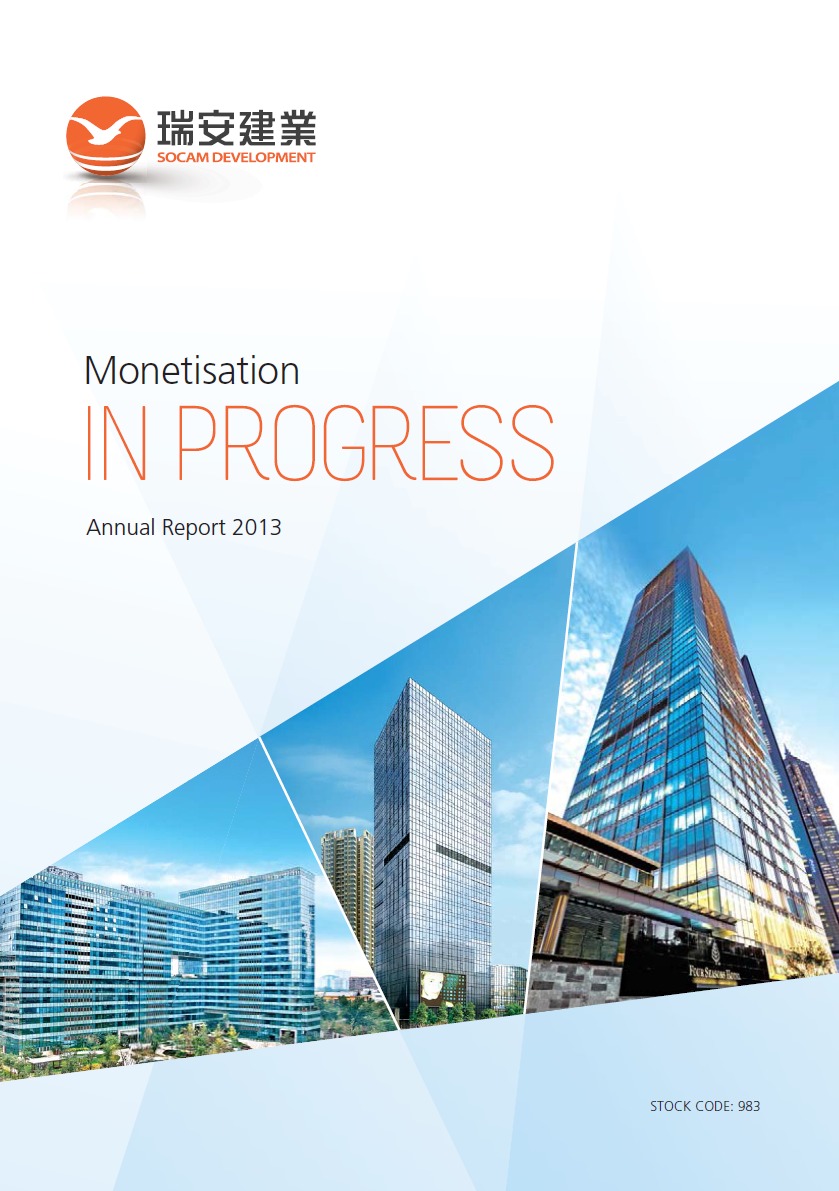 | Company Name: | SOCAM Development Limited  | | Company Web Site: | www.socam.com | | Annual Revenue: | $100 million - $1 billion | | Employee Base: | 1,000 - 10,000 Employees | | Core Industry: | Conglomerates, Holding Cos., Divers. Invest. | | Type of Report: | Annual Report | | Title/Theme: | "Monetisation in Progress" | | Industry Award Garnered: | Bronze | | | | Judging Results | | First Impression: | | | Report Cover: | | | Letter to Shareholders: | | | Report Narrative: | | | Report Financials: | | | Creativity: | | | Message Clarity: | | | Information Accessibility: | | | Total Score: | |