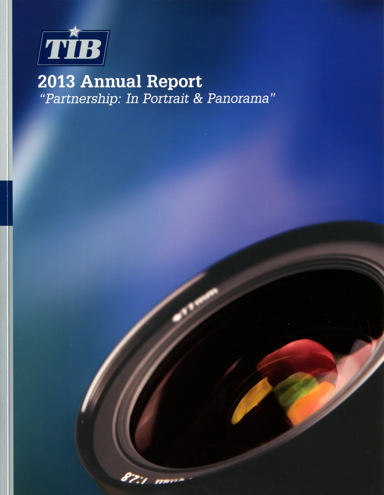| Company Name: | TIB – The Independent BankersBank  | | Company Web Site: | www.mybankersbank.com | | Annual Revenue: | $1 - $10 billion | | Employee Base: | 100 - 1,000 Employees | | Core Industry: | Banks – Commercial | | Type of Report: | Annual Report | | Title/Theme: | "Partnership: In Portrait & Panorama" | | Industry Award Garnered: | Bronze | | | | Judging Results | | First Impression: | | | Report Cover: | | | Letter to Shareholders: | | | Report Narrative: | | | Report Financials: | | | Creativity: | | | Message Clarity: | | | Information Accessibility: | | | Total Score: | |
