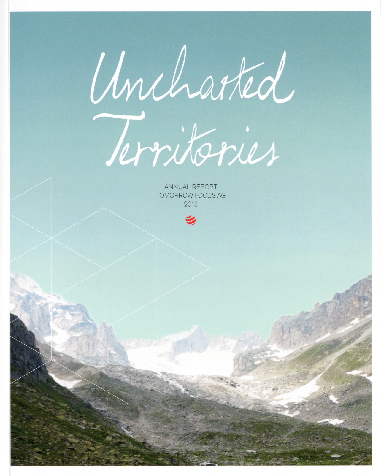 | Company Name: | TOMORROW FOCUS AG  | | Company Web Site: | www.tomorrow-focus.de | | Annual Revenue: | $100 million - $1 billion | | Employee Base: | 100 - 1,000 Employees | | Core Industry: | Conglomerates, Holding Cos., Divers. Invest. | | Type of Report: | Annual Report | | Title/Theme: | "Uncharted Territories" | | Industry Award Garnered: | Gold | | | | Judging Results | | First Impression: | | | Report Cover: | | | Letter to Shareholders: | | | Report Narrative: | | | Report Financials: | | | Creativity: | | | Message Clarity: | | | Information Accessibility: | | | Total Score: | |