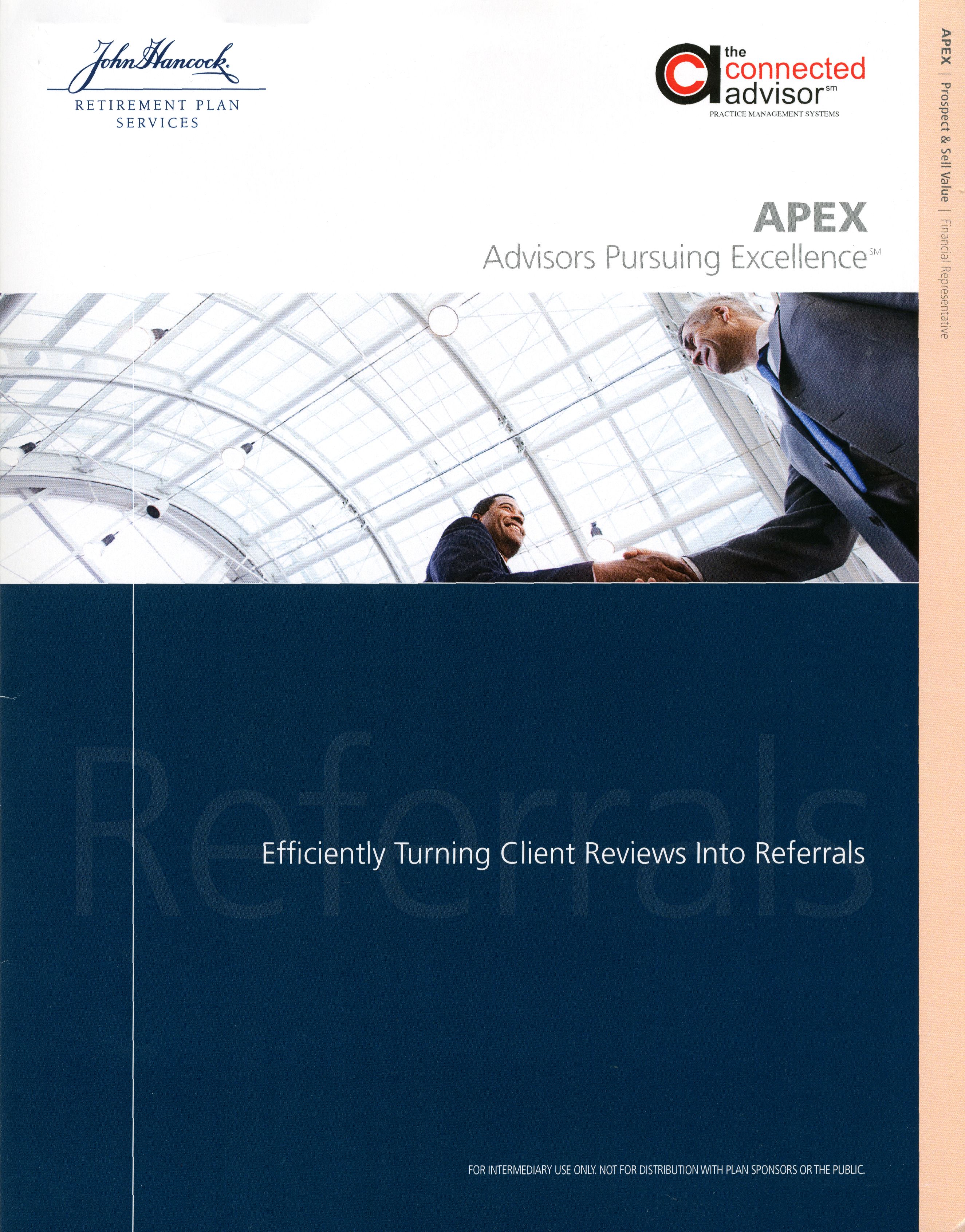 Entry Highlights: View Competition Class Performance | Company Name: | John Hancock Retirement Plan Services  | | Company Web Site: | www.johnhancock.com | | Project Name: | The Advisors Pursuing Excellence (AXEX) Program | | Competition Category: | Print: Other (Describe Under 'Special Instructions') | | Annual Revenue: | $10+ billion | | Employee Base: | 10,000+ Employees | | Award Garnered: | Silver | | Top 40 Rank: | 20 | | | | Judging Results | | First Impression: | | | Overall Narrative: | | | Overall Visual Design: | | | Creativity: | | | Message Clarity: | | | Perceived Relevance: | | | Total Score: | |