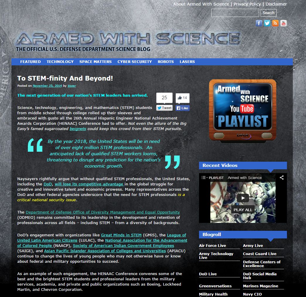 Entry Highlights: View Competition Class Performance | Company/Agency Name: | Office of Diversity Management & Equal Opportunity  / Knowesis Inc. | | Company/Agency Web Site: | www.diversity.defense.gov / www.knowesis-inc.com | | Project Name: | "To STEM-finity And Beyond!" | | Competition Category: | Digital: Web/Intranet Site (List Under 'Special Instructions') | | Annual Revenue: | Up to $10 million | | Employee Base: | Up to 100 Employees | | Award Garnered: | Silver | | | | Judging Results | | First Impression: | | | Overall Narrative: | | | Overall Visual Design: | | | Creativity: | | | Message Clarity: | | | Perceived Relevance: | | | Total Score: | |