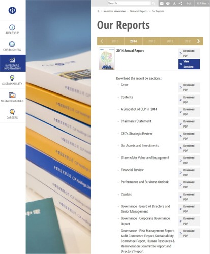 | Company Name: | CLP Holdings Limited  | | Company Web Site: | www.clpgroup.com | | Annual Revenue: | $10+ billion | | Employee Base: | 1,000 - 10,000 Employees | | Core Industry: | Utilities – Electric | | Type of Report: | Digital / Online Report | | Industry Award Garnered: | Silver | | Top 50 Worldwide Rank: | | | | | Judging Results | | First Impression: | | | Report Cover: | | | Letter to Shareholders: | | | Report Narrative: | | | Report Financials: | | | Creativity: | | | Message Clarity: | | | Information Accessibility: | | | Total Score: | |