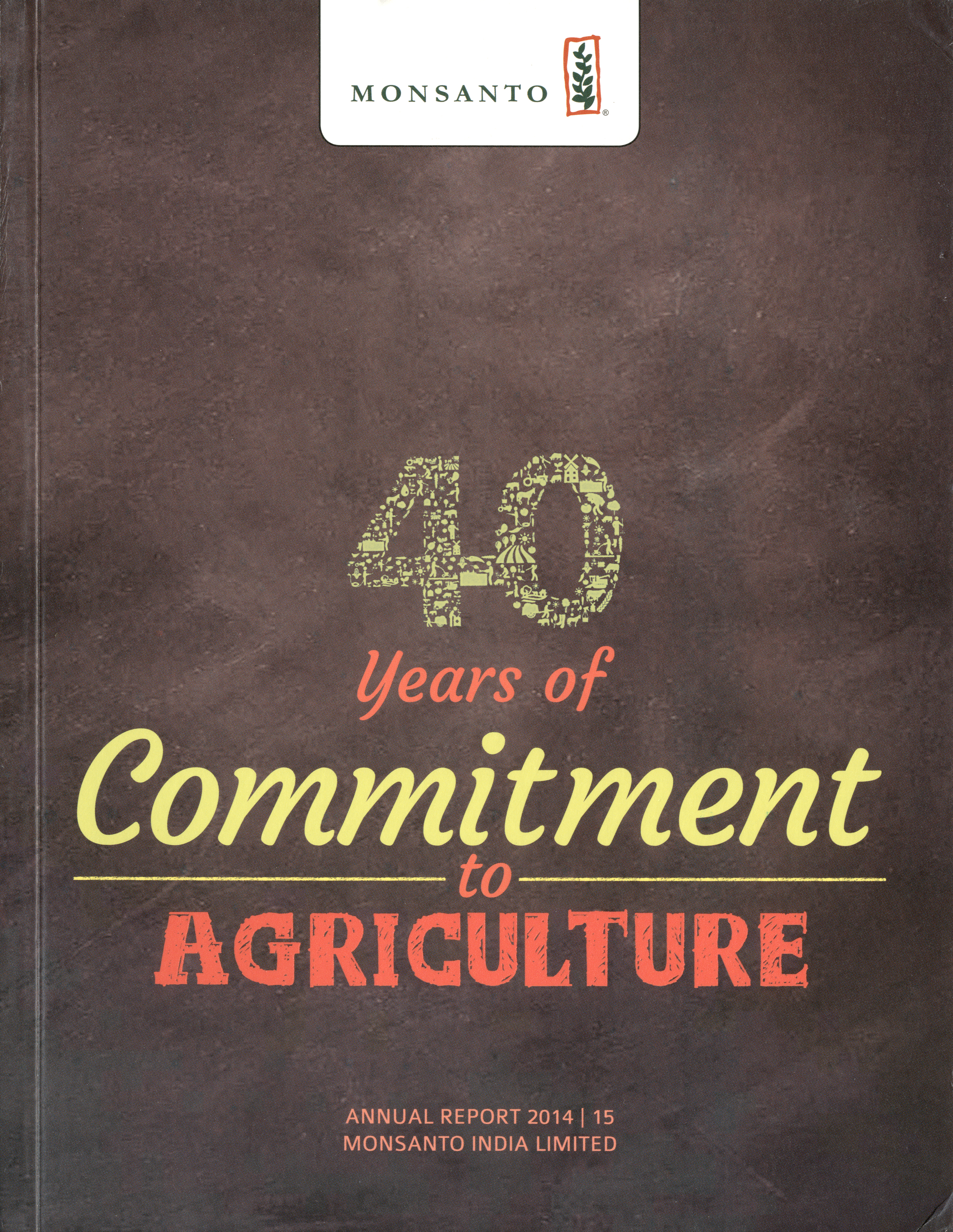 | Company/Agency Name: | Monsanto India Limited / Wyatt Communications Pvt.Ltd. | | Company/Agency Web Site: | www.monsantoindia.com/ / www.wyatt.co.in | | Annual Revenue: | $10 - $100 million | | Employee Base: | 100 – 1,000 employees | | Core Industry: | Agribusiness | | Type of Report: | Annual Report | | Industry Award Garnered: | Platinum | | Top 50 Worldwide Rank: | | | | | Judging Results | | First Impression: | | | Report Cover: | | | Letter to Shareholders: | | | Report Narrative: | | | Report Financials: | | | Creativity: | | | Message Clarity: | | | Information Accessibility: | | | Total Score: | |