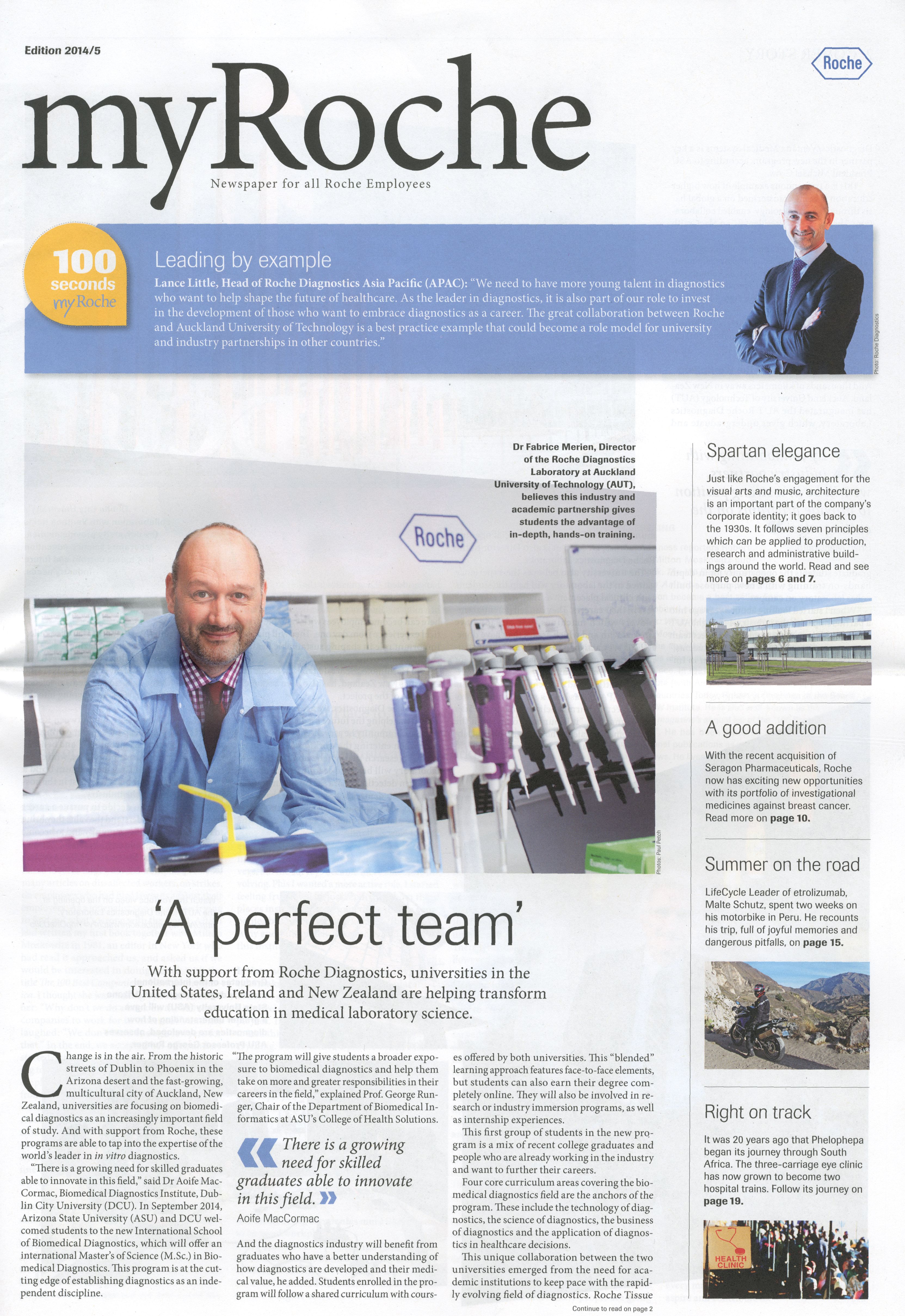 | Company/Agency Name: | F. Hoffmann-La Roche AG  / C3 Creative Code and Content GmbH | | Company/Agency Web Site: | www.roche.com / www.kircher-burkhradt.com | | Annual Revenue: | $1 - $10 billion | | Employee Base: | 10,000+ Employees | | Publication/Project Name: | "myRoche" — issue 5/2014 | | Publication Format: | Print | Bi-Monthly | | Primary Audience: | Employees | | Award Garnered: | Silver | | Top 25 Rank: | 21 | | | | Judging Results | | First Impression: | | | Artwork: | | | Readability: | | | Creativity: | | | Message Clarity: | | | Variety of Features: | | | Audience Focus: | | | Perceived Relevance: | | | Ease of Navigation: | | | Total Score: | |