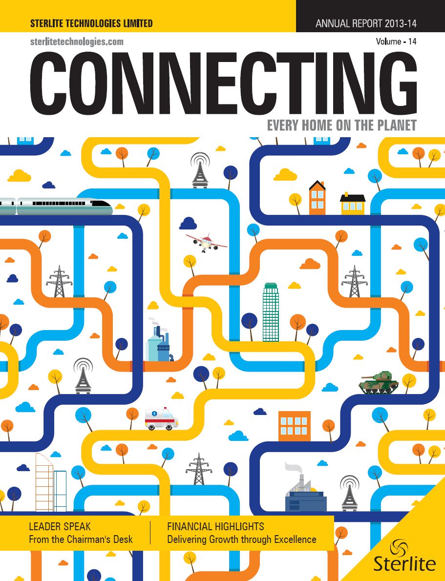 Entry Highlights: View Competition Class Performance | Company/Agency Name: | STERLITE TECHNOLOGIES LTD.  / LEMON DESIGN | | Company/Agency Web Site: | www.sterlitetechnologies.com / www.lemondesign.co.in | | Project Name: | "CONNECTING" — ANNUAL REPORT 2013-14 | | Competition Category: | Print: Annual Report | | Annual Revenue: | $100 million - $1 billion | | Employee Base: | 1,000 - 10,000 Employees | | Award Garnered: | Bronze | | | | Judging Results | | First Impression: | | | Overall Narrative: | | | Overall Visual Design: | | | Creativity: | | | Message Clarity: | | | Perceived Relevance: | | | Total Score: | |