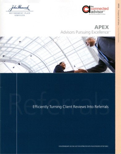 Entry Highlights: View Competition Class Performance | Company Name: | John Hancock Retirement Plan Services  | | Company Web Site: | www.johnhancock.com | | Project Name: | The Advisors Pursuing Excellence (AXEX) Program | | Competition Category: | Print: Other (Describe Under 'Special Instructions') | | Annual Revenue: | $10+ billion | | Employee Base: | 10,000+ Employees | | Award Garnered: | Silver | | | | Judging Results | | First Impression: | | | Overall Narrative: | | | Overall Visual Design: | | | Creativity: | | | Message Clarity: | | | Perceived Relevance: | | | Total Score: | |