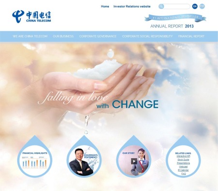 Entry Highlights: View Competition Class Performance | Company Name: | China Telecom Corporation Limited  | | Company Web Site: | ar2013.chinatelecom-h.com/reports/ | | Project Name: | The China Telecom Online Annual Report | | Competition Category: | Digital: Multimedia/Interactive | | Annual Revenue: | $10+ billion | | Employee Base: | 10,000+ Employees | | Award Garnered: | Platinum | | Top 100 Rank: | 8 | | | | Judging Results | | First Impression: | | | Overall Narrative: | | | Overall Visual Design: | | | Creativity: | | | Message Clarity: | | | Perceived Relevance: | | | Total Score: | |