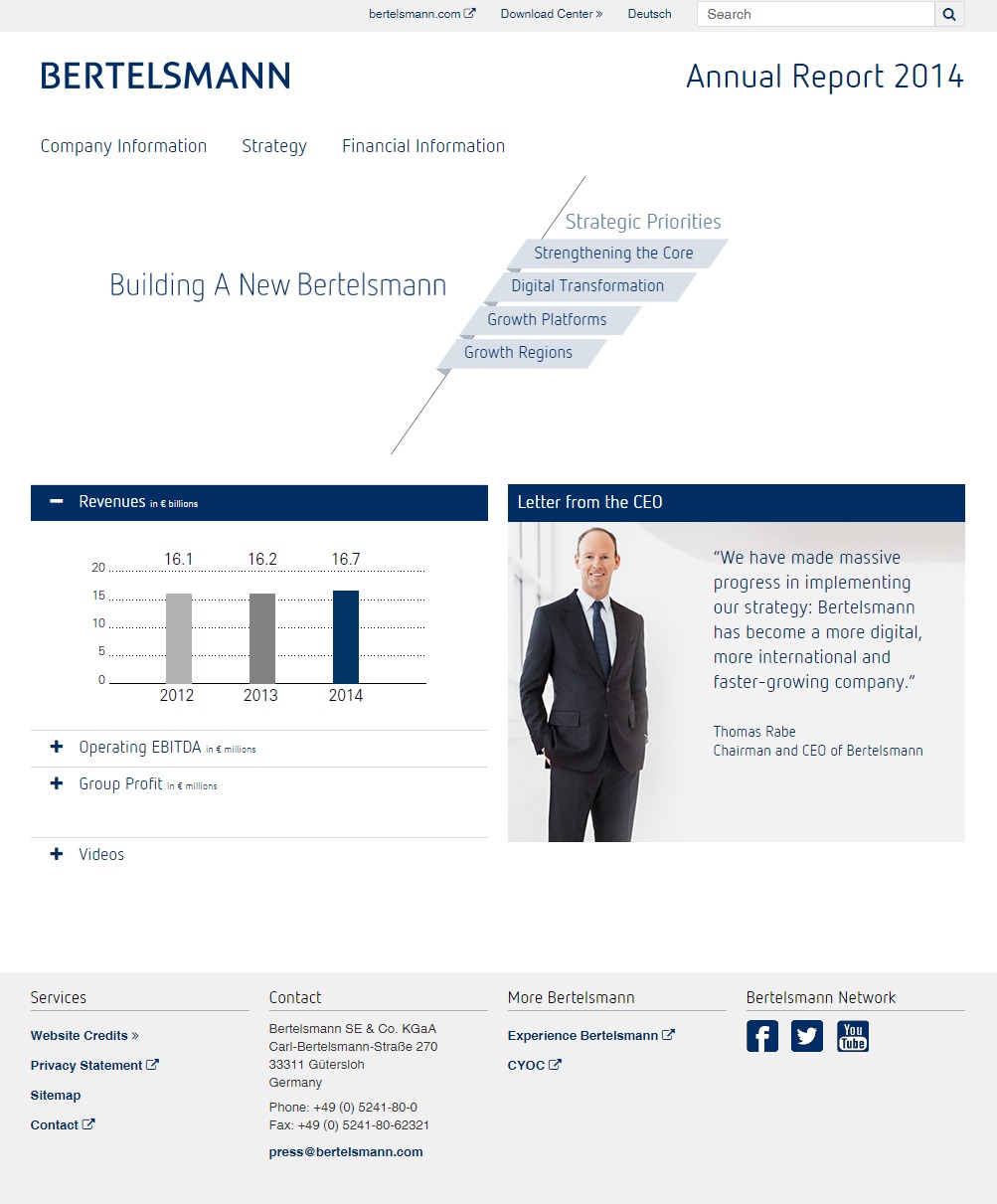 | | 2014 Vision Awards Annual Report Competition | Bertelsmann SE & Co. KGaA