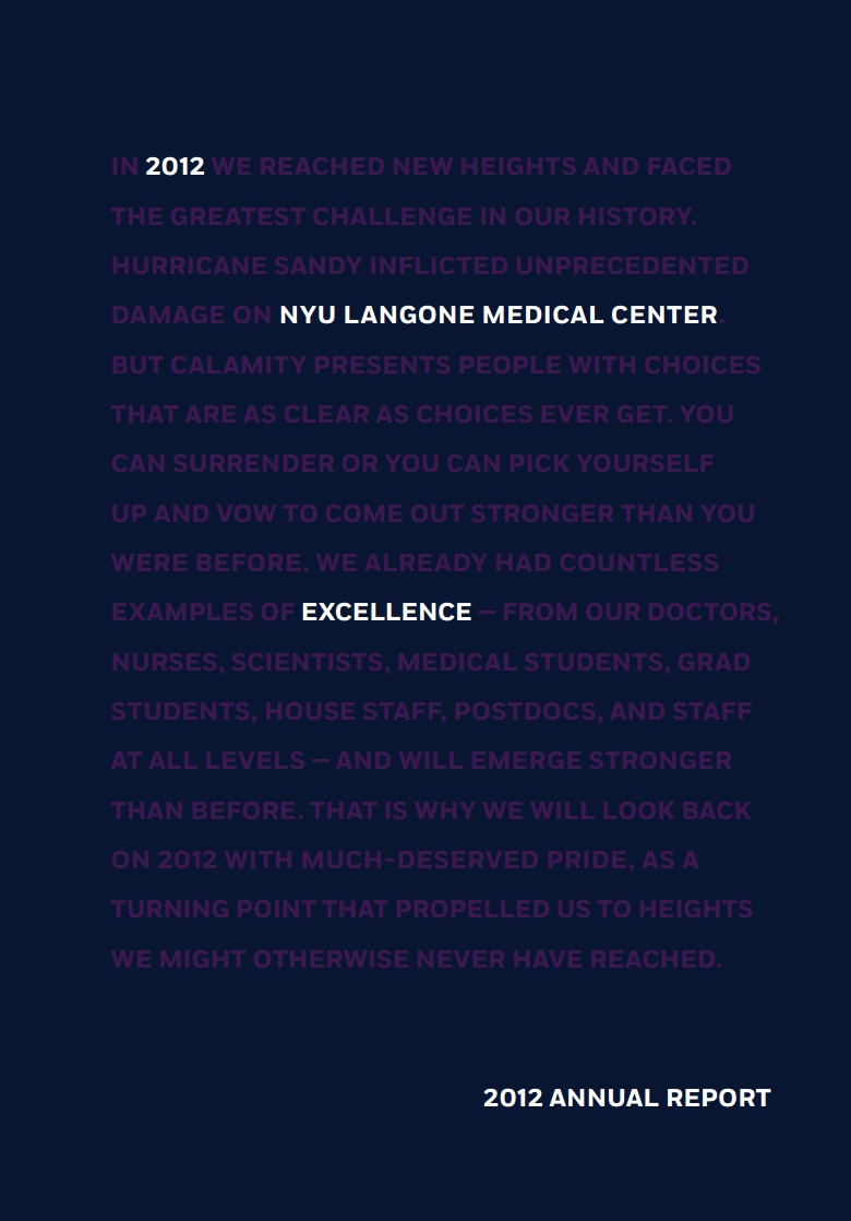 | | 2014 Vision Awards Annual Report Competition | NYU Langone Medical Center Ideas On Purpose