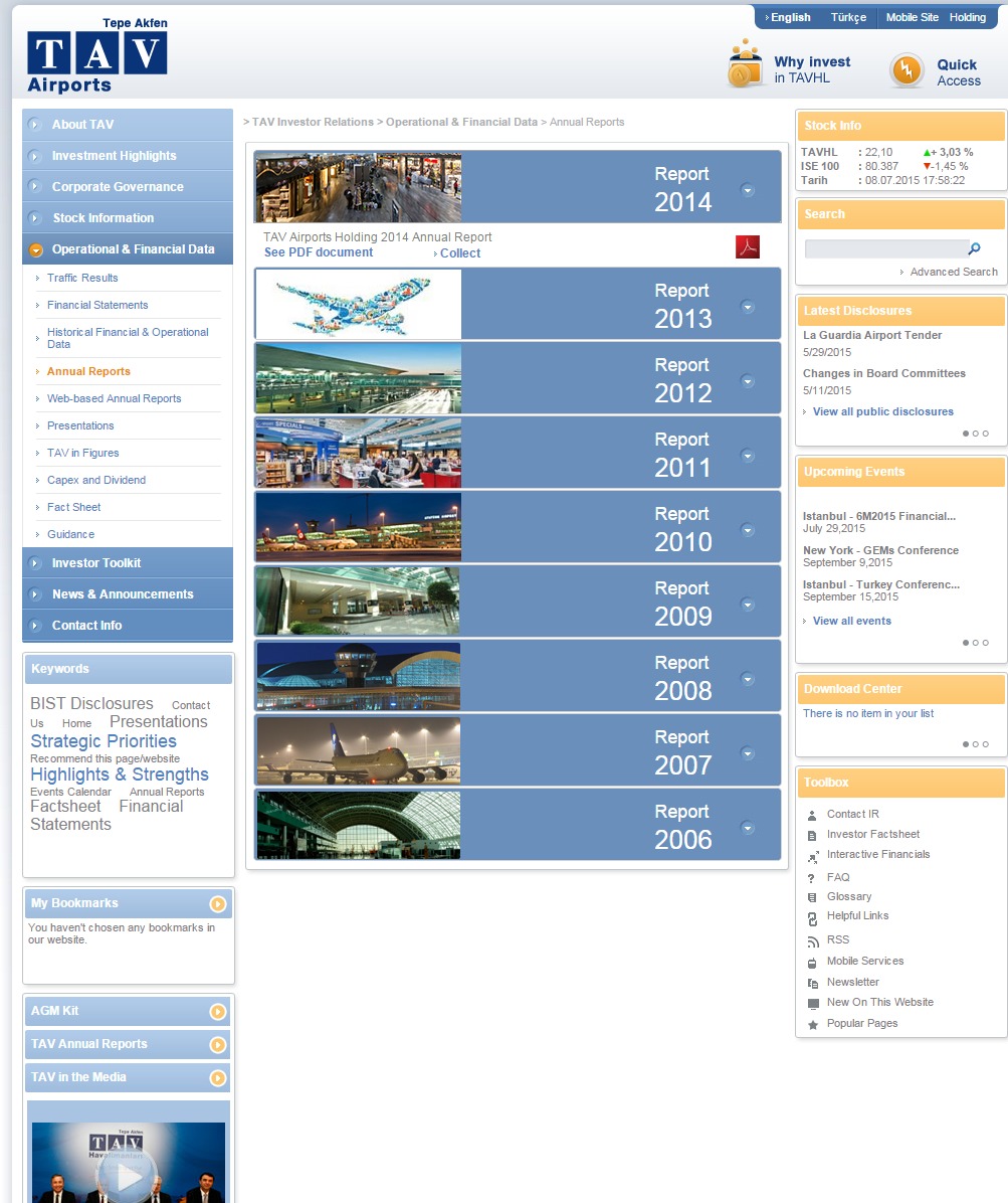 | | 2014 Vision Awards Annual Report Competition | TAV Airports Finar Kurumsal