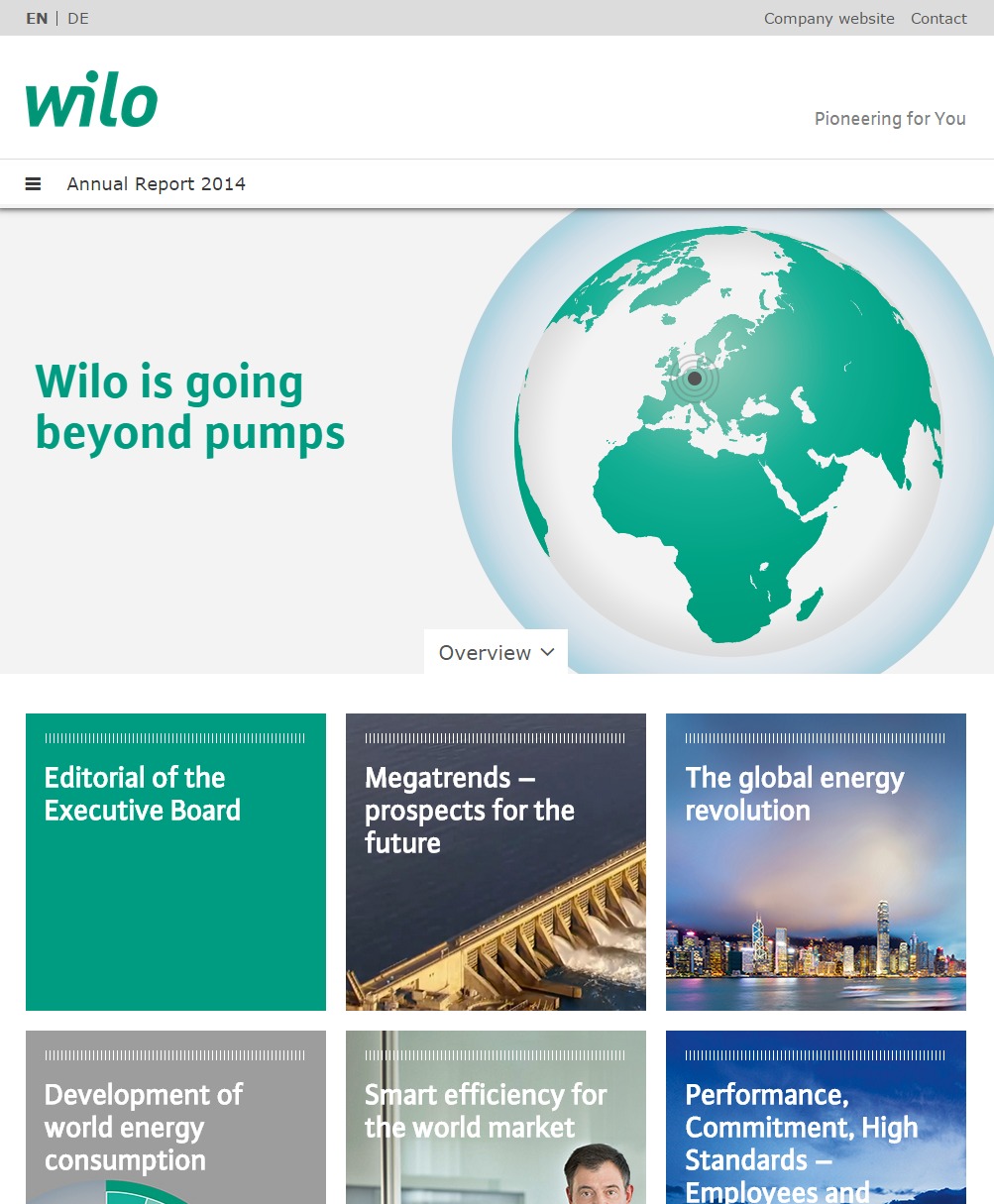 | | 2014 Vision Awards Annual Report Competition | Wilo SE KorteMaerzWolff Kommunikation