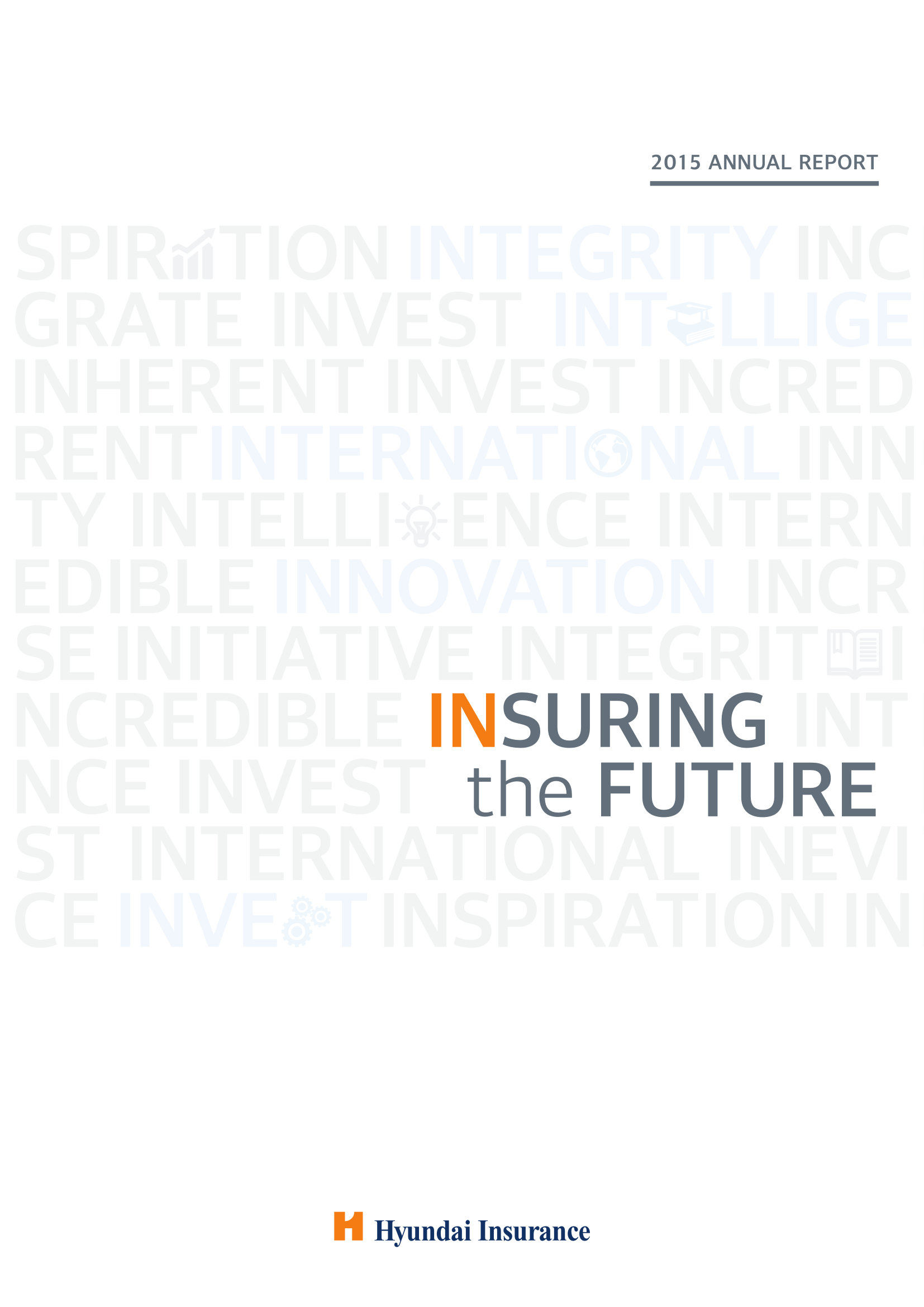 | Company/Agency Name: | Hyundai Marine & Fire Insurance / Talantone Creative Group | | Company/Agency Web Site: | www.hi.co.kr / www.talantone.com | | Annual Revenue: | $1 – $10 billion | | Employee Base: | 1,000 – 10,000 employees | | Core Industry: | Insurance | | Type of Report: | Annual Report | | Title/Theme: | "Insuring the Future" | Industry Award Garnered: Bronze | Top 50 Worldwide Rank: | | | | | Judging Results | | First Impression: | | | Report Cover: | | | Letter to Shareholders: | | | Report Narrative: | | | Report Financials: | | | Creativity: | | | Message Clarity: | | | Information Accessibility: | | | Total Score: | |