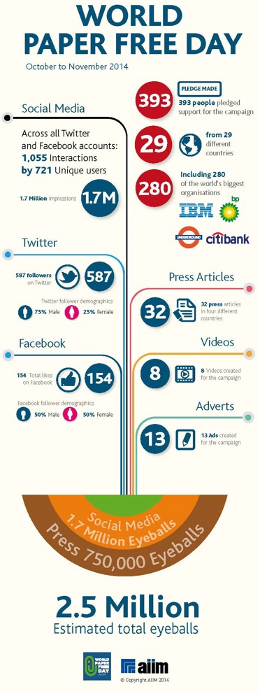| Company/Agency Name: | AIIM International  / Sarum | | Company/Agency Web Site: | www.aiim.org / www.sarumpr.com | | Annual Revenue: | Up to $10 million | | Employee Base: | Up to 100 Employees | | Publication/Project Name: | "World Paper Free Day" | | Publication Format: | Digital: Multimedia/Interactive | | Award Garnered: | Gold | | Top 50 Rank: | 17 | | | | | Judging Results | | First Impression: | | | Artwork: | | | Readability: | | | Creativity: | | | Message Clarity: | | | Variety of Features: | | | Audience Focus: | | | Perceived Relevance: | | | Ease of Navigation: | | | Total Score: | |