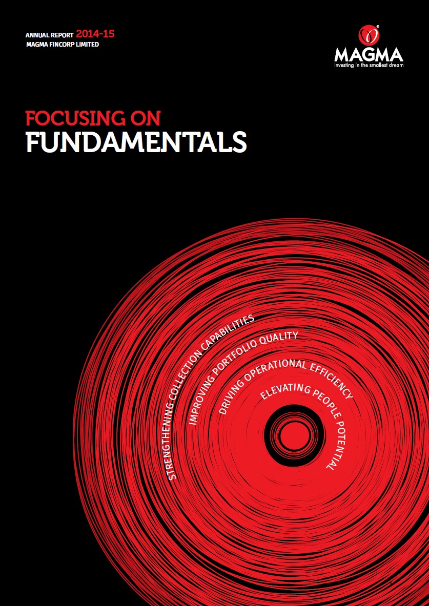 Entry Highlights: View Competition Class Performance | Company/Agency Name: | Magma Fincorp Limited  / AICL Communications | | Company/Agency Web Site: | magma.co.in/ / www.aicl.in/ | | Project Name: | Annual Report 2015 | | Competition Category: | Print: Annual Report | | Annual Revenue: | $10 - $100 million | | Employee Base: | 1,000 - 10,000 employees | | Award Garnered: | Gold | | Top 100 Rank: | 39 | | | | Judging Results | | First Impression: | | | Overall Narrative: | | | Overall Visual Design: | | | Creativity: | | | Message Clarity: | | | Perceived Relevance: | | | Total Score: | |