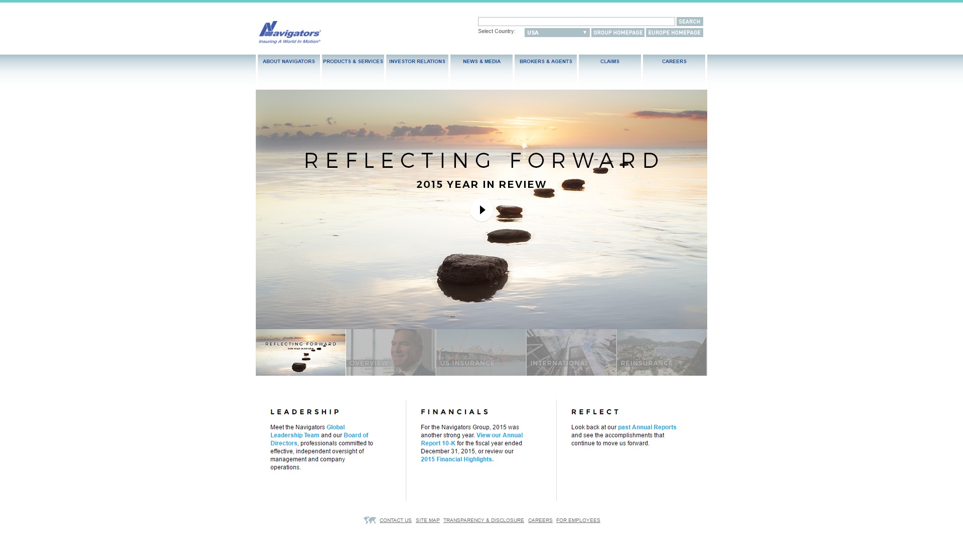 | Company/Agency Name: | The Navigators Group, Inc. / Onward Publishing | | Company/Agency Web Site: | www.navg.com / www.onwardpublishing.com | | Annual Revenue: | $1 – $10 billion | | Employee Base: | 100 – 1,000 employees | | Core Industry: | Insurance | | Type of Report: | Online Report | | Title/Theme: | Reflecting Forward: Navigators Year in Review 2015 | Industry Award Garnered: Silver | Top 100 Worldwide Rank: | | | | | Judging Results | | First Impression: | | | Report Cover: | | | Letter to Shareholders: | | | Report Narrative: | | | Report Financials: | | | Creativity: | | | Message Clarity: | | | Information Accessibility: | | | Total Score: | |