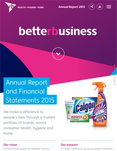 | Company/Agency Name: | RB  / Emperor | | Company/Agency Web Site: | http://www.rb.com / http://emperor.works | | Annual Revenue: | $10 - $100 million | | Employee Base: | 100 – 1,000 employees | | Publication/Project Name: | Better Business Annual Report and Financial statements 2015 | | Publication Format: | Digital | One-Time / Annual | | Primary Audience: | Other | | Award Garnered: | Gold | | | | | Judging Results | | First Impression: | | | Artwork: | | | Readability: | | | Creativity: | | | Message Clarity: | | | Variety of Features: | | | Audience Focus: | | | Perceived Relevance: | | | Ease of Navigation: | | | Total Score: | |
