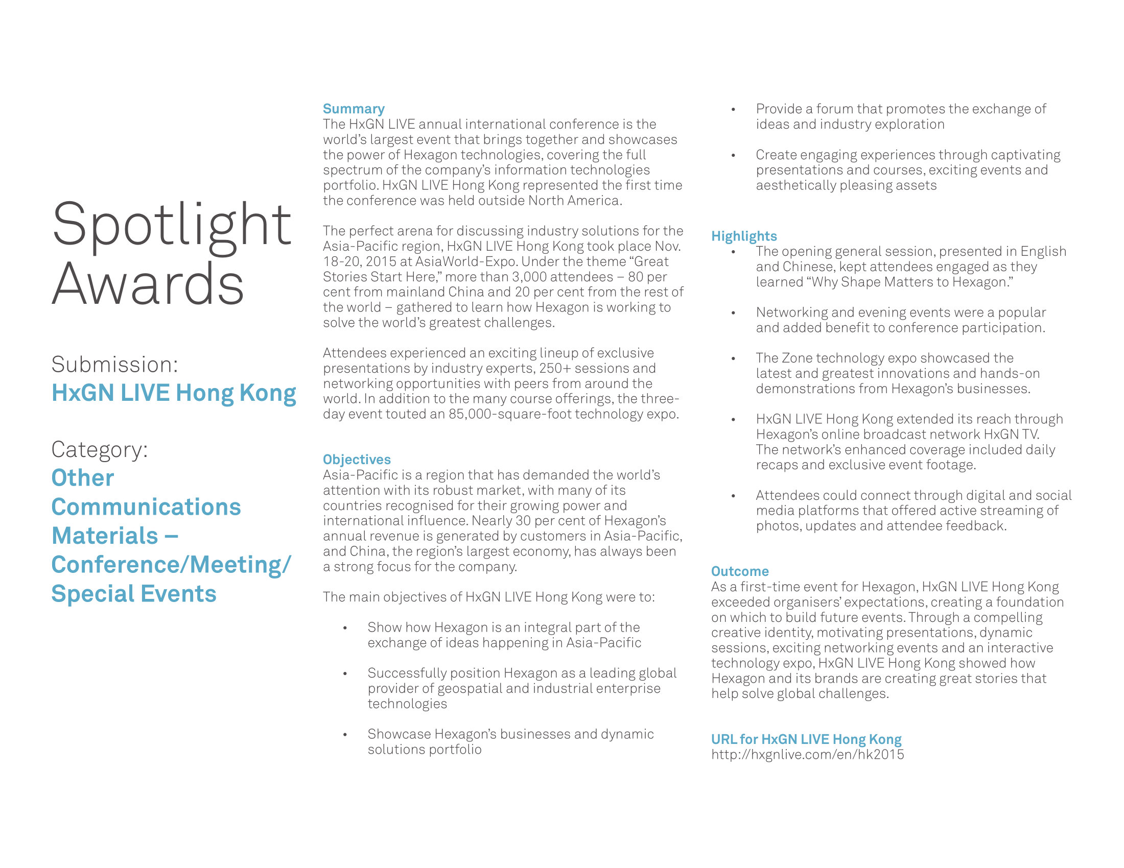 | | 2016 Spotlight Awards Global Communications Competition | Hexagon