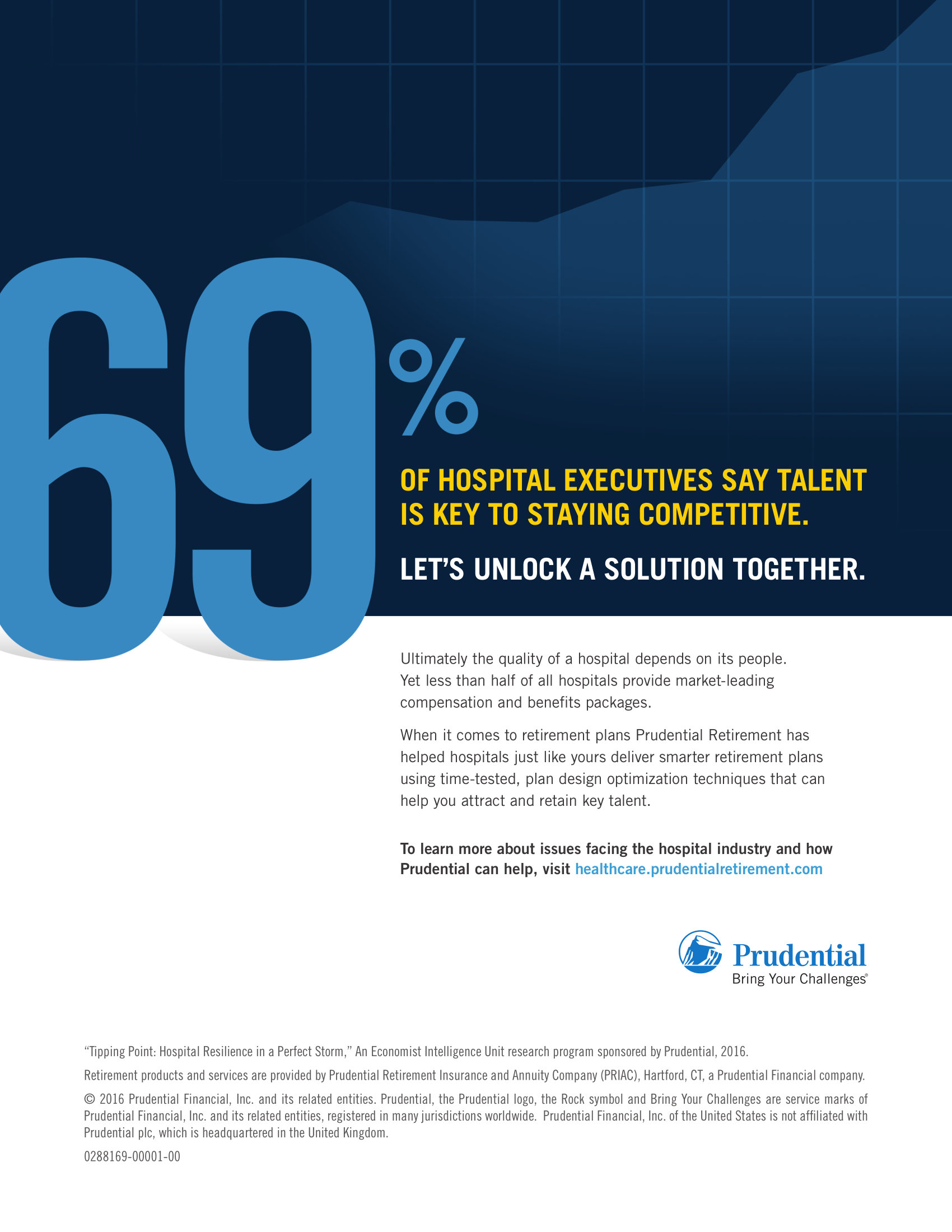 Entry Highlights: View Competition Class Performance | Company Name: | Prudential  | | Company Ticker Symbol: | Yes | | Project Name: | Prudential Retirement Healthcare Market Campaign | | Competition Category: | Print: Other | | Annual Revenue: | $10+ billion | | Employee Base: | 10,000+ employees | | Award Garnered: | Platinum | | Top 100 Rank: | 15 | | | | Judging Results | | First Impression: | | | Overall Narrative: | | | Overall Visual Design: | | | Creativity: | | | Message Clarity: | | | Perceived Relevance: | | | Total Score: | |