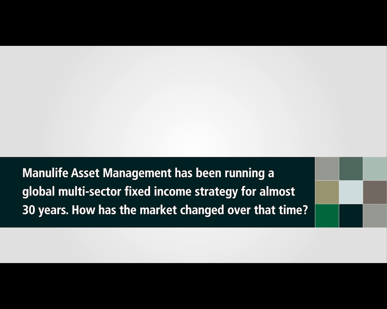 Entry Highlights: View Competition Class Performance | Company Name: | Manulife Asset Management  | | Company Web Site: | www.manulifeam.com | | Company Ticker Symbol: | Yes | | Project Name: | "Unconstrained Opportunity" | | Competition Category: | Video/Audio: Testimonial/Case Study | | Annual Revenue: | $10+ billion | | Employee Base: | 1,000 - 10,000 Employees | | Award Garnered: | Platinum | | Top 100 Rank: | 28 | | | | Judging Results | | First Impression: | | | Overall Narrative: | | | Overall Visual Design: | | | Creativity: | | | Message Clarity: | | | Perceived Relevance: | | | Total Score: | |