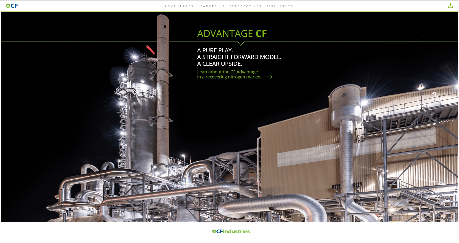 | Company/Agency Name: | CF Industries / Corporate Reports Inc | | Company/Agency Web Site: | www.cfindustries.com/ / www.cricommuications.com | | Annual Revenue: | $1 - $10 billion | | Employee Base: | 1,000 - 10,000 employees | | Core Industry: | Agribusiness | | Type of Report: | Digital Report | | Title/Theme: | "Advantage CF" | | Regional Top 80 Rank: | 20 (Americas Region) | | Country-Based Honors: | Top 50 American Reports | | Industry Award Garnered: | Platinum | | Top 100 Worldwide Rank: | 47 | | | | Judging Results | | First Impression: | | | Report Cover: | | | Letter to Shareholders: | | | Report Narrative: | | | Report Financials: | | | Creativity: | | | Message Clarity: | | | Information Accessibility: | | | Total Score: | |