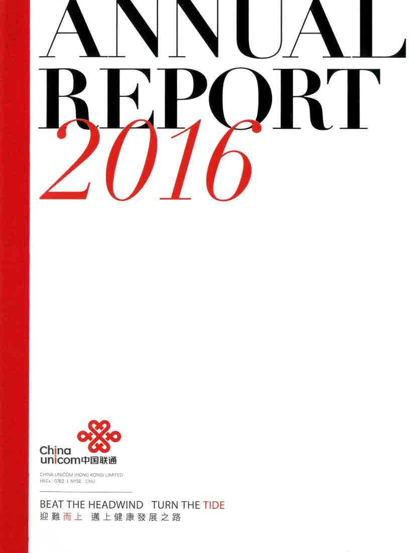 | Company/Agency Name: | China Unicom (Hong Kong) Limited / GenNex Financial Media Limited | | Company/Agency Web Site: | ar2016.chinaunicom.com.hk / www.gennexfm.com | | Annual Revenue: | $10+ billion | | Employee Base: | 10,000+ Employees | | Core Industry: | Telecommunications | | Type of Report: | Annual Report | | Title/Theme: | "Turn the Tide" | | Regional Top 80 Rank: | 6 (Asia-Pacific Region) | | Country-Based Honors: | Top 40 Chinese Reports | | Industry Award Garnered: | Gold | | Top 100 Worldwide Rank: | 13 | | | | Judging Results | | First Impression: | | | Report Cover: | | | Letter to Shareholders: | | | Report Narrative: | | | Report Financials: | | | Creativity: | | | Message Clarity: | | | Information Accessibility: | | | Total Score: | |