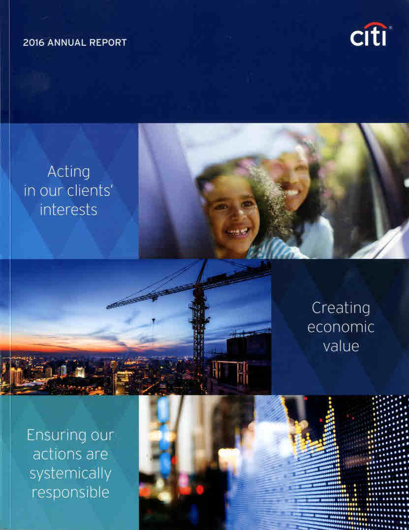 | Company Name: | Citigroup  | | Company Web Site: | www.citi.com | | Annual Revenue: | $1 - $10 billion | | Employee Base: | 10,000+ Employees | | Core Industry: | Financials — Diversified Services | | Type of Report: | Annual Report | | Industry Award Garnered: | Bronze | | | | Judging Results | | First Impression: | | | Report Cover: | | | Letter to Shareholders: | | | Report Narrative: | | | Report Financials: | | | Creativity: | | | Message Clarity: | | | Information Accessibility: | | | Total Score: | |
