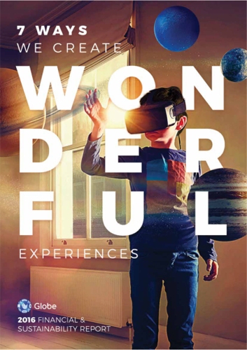 | Company Name: | Globe Telecom  | | Company Web Site: | www.globe.com.ph | | Annual Revenue: | $1 - $10 billion | | Employee Base: | 1,000 - 10,000 employees | | Core Industry: | Telecommunications | | Type of Report: | Integrated Report | | Title/Theme: | "7 Ways We Create Wonderful Experiences" | | Regional Top 80 Rank: | 44 (Asia-Pacific Region) | | Industry Award Garnered: | Gold | | | | Judging Results | | First Impression: | | | Report Cover: | | | Letter to Shareholders: | | | Report Narrative: | | | Report Financials: | | | Creativity: | | | Message Clarity: | | | Information Accessibility: | | | Total Score: | |