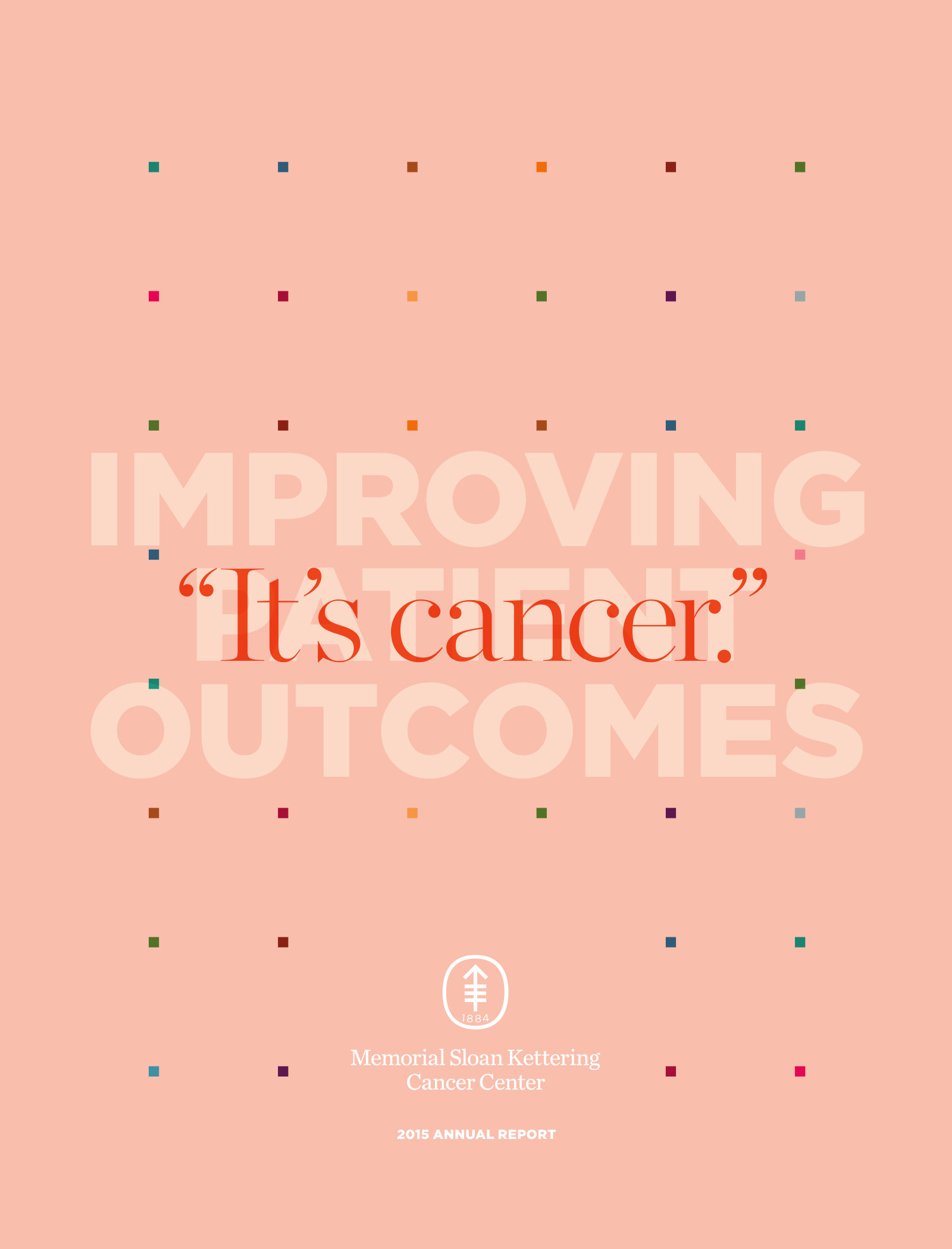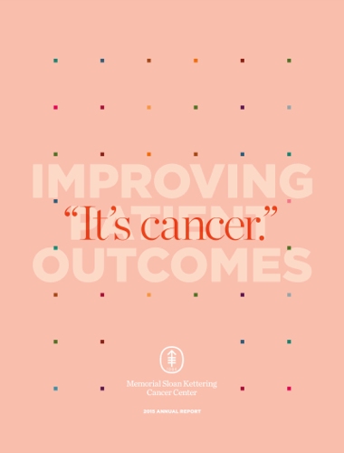 | Company/Agency Name: | Memorial Sloan Kettering Cancer Center / Ideas On Purpose | | Company/Agency Web Site: | www.msk.org / www.ideasonpurpose.com | | Annual Revenue: | $1 - $10 billion | | Employee Base: | 10,000+ employees | | Core Industry: | Health Care — Providers & Services | | Type of Report: | Annual Report | | Title/Theme: | "It's Cancer" | | Regional Top 80 Rank: | 64 (Americas Region) | | Country-Based Honors: | Top 50 American Reports | | Industry Award Garnered: | Gold | | | | Judging Results | | First Impression: | | | Report Cover: | | | Letter to Shareholders: | | | Report Narrative: | | | Report Financials: | | | Creativity: | | | Message Clarity: | | | Information Accessibility: | | | Total Score: | |