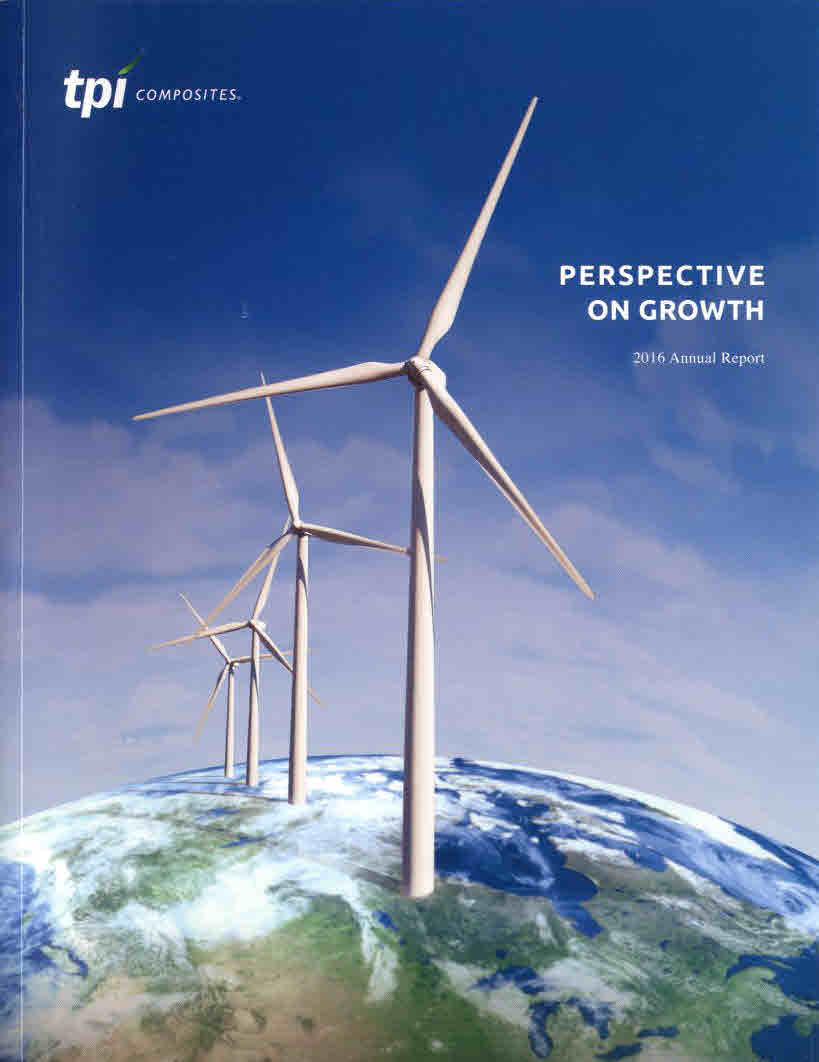 | Company/Agency Name: | TPI Composites / Eisenberg And Associates | | Company/Agency Web Site: | www.tpicomposites.com / www.eisenberginc.com | | Annual Revenue: | $100 million - $1 billion | | Employee Base: | 1,000 - 10,000 Employees | | Core Industry: | Energy — Equipment & Services | | Type of Report: | Annual Report | | Title/Theme: | "Perspective on Growth" | | Regional Top 80 Rank: | 78 (Americas Region) | | Industry Award Garnered: | Silver | | | | Judging Results | | First Impression: | | | Report Cover: | | | Letter to Shareholders: | | | Report Narrative: | | | Report Financials: | | | Creativity: | | | Message Clarity: | | | Information Accessibility: | | | Total Score: | |