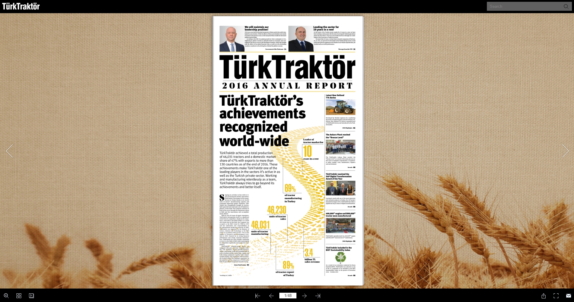 | Company/Agency Name: | TÜRK TRAKTÖR VE ZIRAAT MAKINELERI A.S. / DANISKA REKLAM KÜLTÜR TASARIM A.S. | | Company/Agency Web Site: | www.turktraktor.com.tr / www.daniska.com.tr | | Annual Revenue: | $100 million - $1 billion | | Employee Base: | 1,000 - 10,000 employees | | Core Industry: | Equipment, Machinery & Instruments | | Type of Report: | Annual Report | | Industry Award Garnered: | Bronze | | | | Judging Results | | First Impression: | | | Report Cover: | | | Letter to Shareholders: | | | Report Narrative: | | | Report Financials: | | | Creativity: | | | Message Clarity: | | | Information Accessibility: | | | Total Score: | |