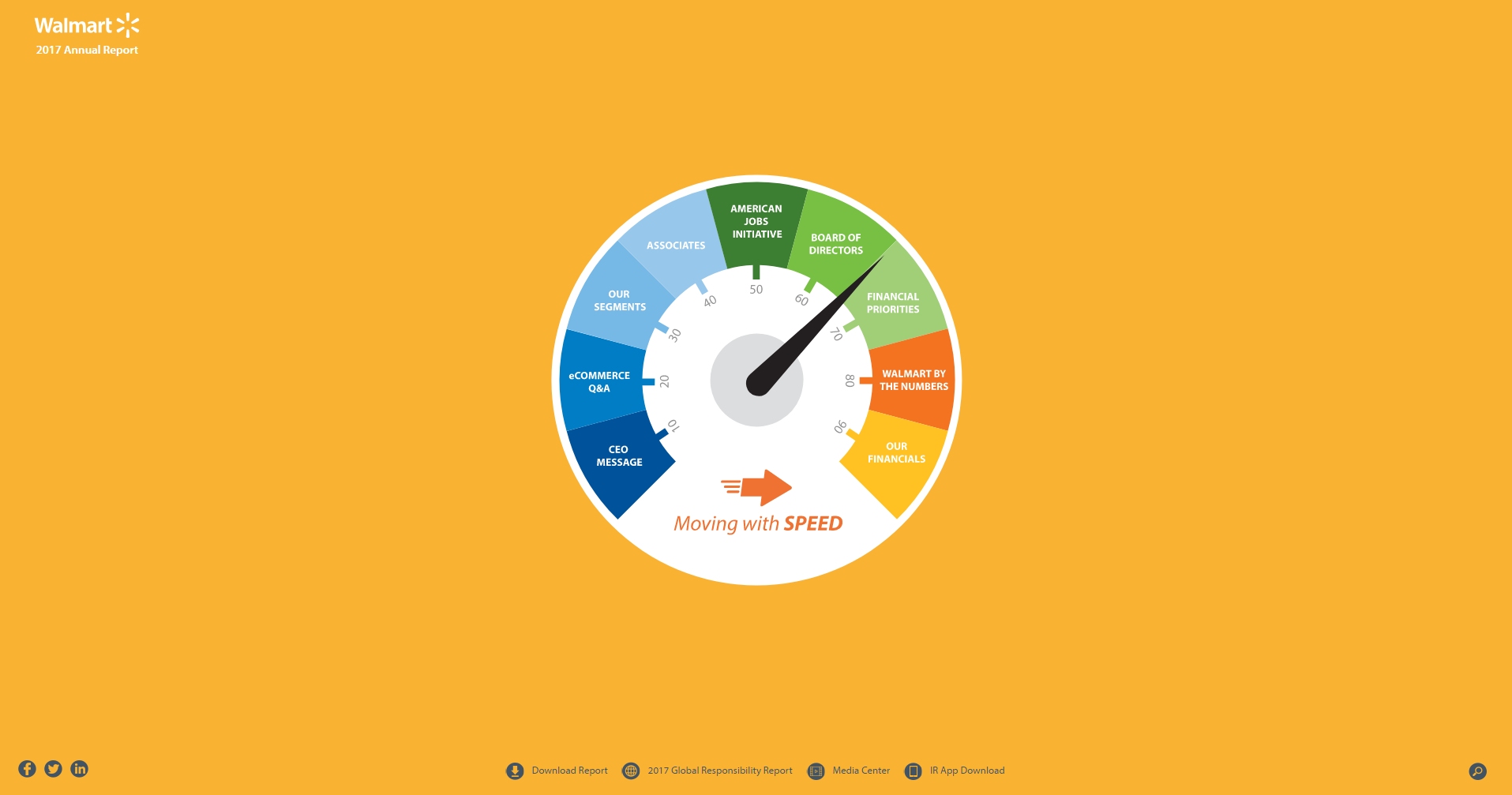 | Company/Agency Name: | Wal-Mart Stores, Inc. / Corporate Reports Inc | | Company/Agency Web Site: | corporate.walmart.com/ / www.cricommunications.com | | Annual Revenue: | $10+ billion | | Employee Base: | 10,000+ employees | | Core Industry: | Retailing — Multi-line Retail | | Type of Report: | Digital Report | | Title/Theme: | "Moving With Speed" | | Regional Top 80 Rank: | 8 (Americas Region) | | Country-Based Honors: | Top 50 American Reports | | Industry Award Garnered: | Platinum | | Top 100 Worldwide Rank: | 24 | | | | Judging Results | | First Impression: | | | Report Cover: | | | Letter to Shareholders: | | | Report Narrative: | | | Report Financials: | | | Creativity: | | | Message Clarity: | | | Information Accessibility: | | | Total Score: | |