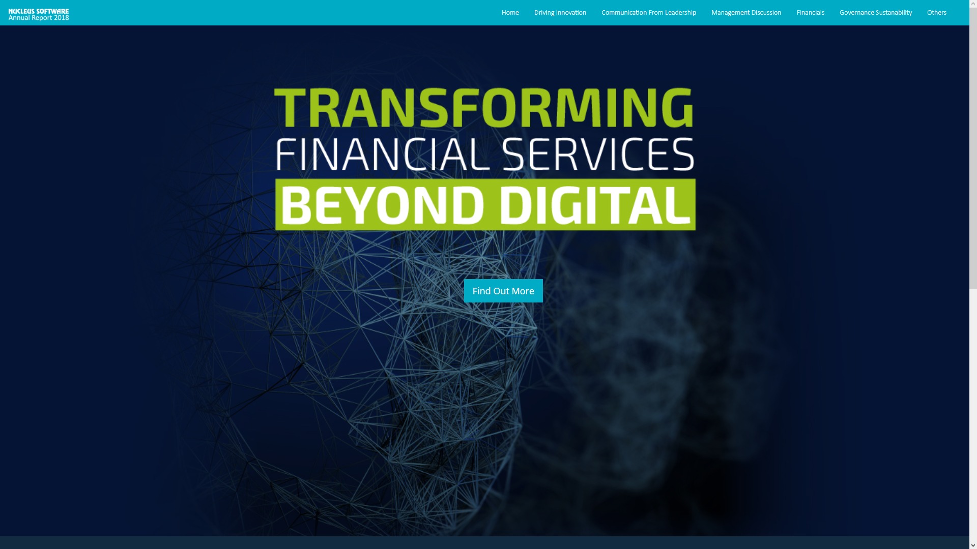| Company Name: | Nucleus Software  | | Company Web Site: | www.nucleussoftware.com | | Annual Revenue: | $10 - $100 million | | Employee Base: | 100 - 1,000 employees | | Core Industry: | Technology †Software | | Type of Report: | Online / Digital Report | | Title/Theme: | TRANSFORMING FINANCIAL SERVICES BEYOND DIGITAL | | Industry Award Garnered: | Gold | | Top 100 Worldwide Rank: | 33 | | | | Judging Results | | First Impression: | | | Report Cover: | | | Letter to Shareholders: | | | Report Narrative: | | | Report Financials: | | | Creativity: | | | Message Clarity: | | | Information Accessibility: | | | Total Score: | |