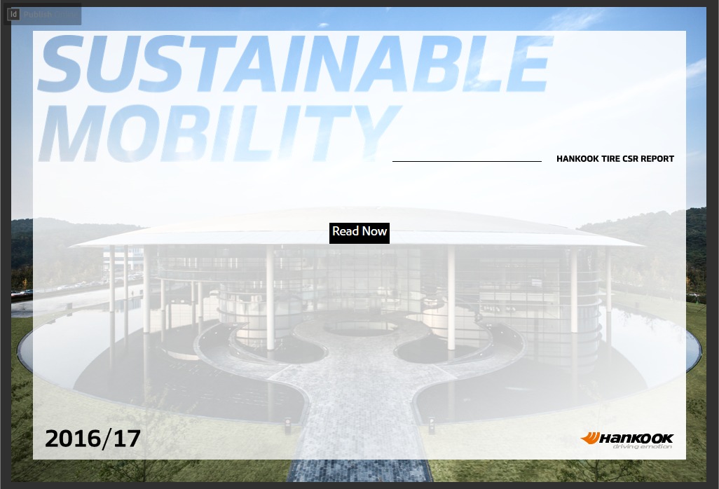 Entry Highlights: View Competition Class Performance | Company/Agency Name: | Hankook Tire  / Honeycommunications | | Company/Agency Web Site: | www.hankooktire.com/us/ / www.honeycomm.co.kr/ | | Project Name: | The Hankook Tire CSR Report 2016-17 | | Competition Category: | Digital: Multimedia/Interactive | | Annual Revenue: | $10+ billion | | Employee Base: | 10,000+ employees | | Award Garnered: | Gold | | Top 100 Rank: | 32 | | | | Judging Results | | First Impression: | | | Overall Narrative: | | | Overall Visual Design: | | | Creativity: | | | Message Clarity: | | | Perceived Relevance: | | | Total Score: | |