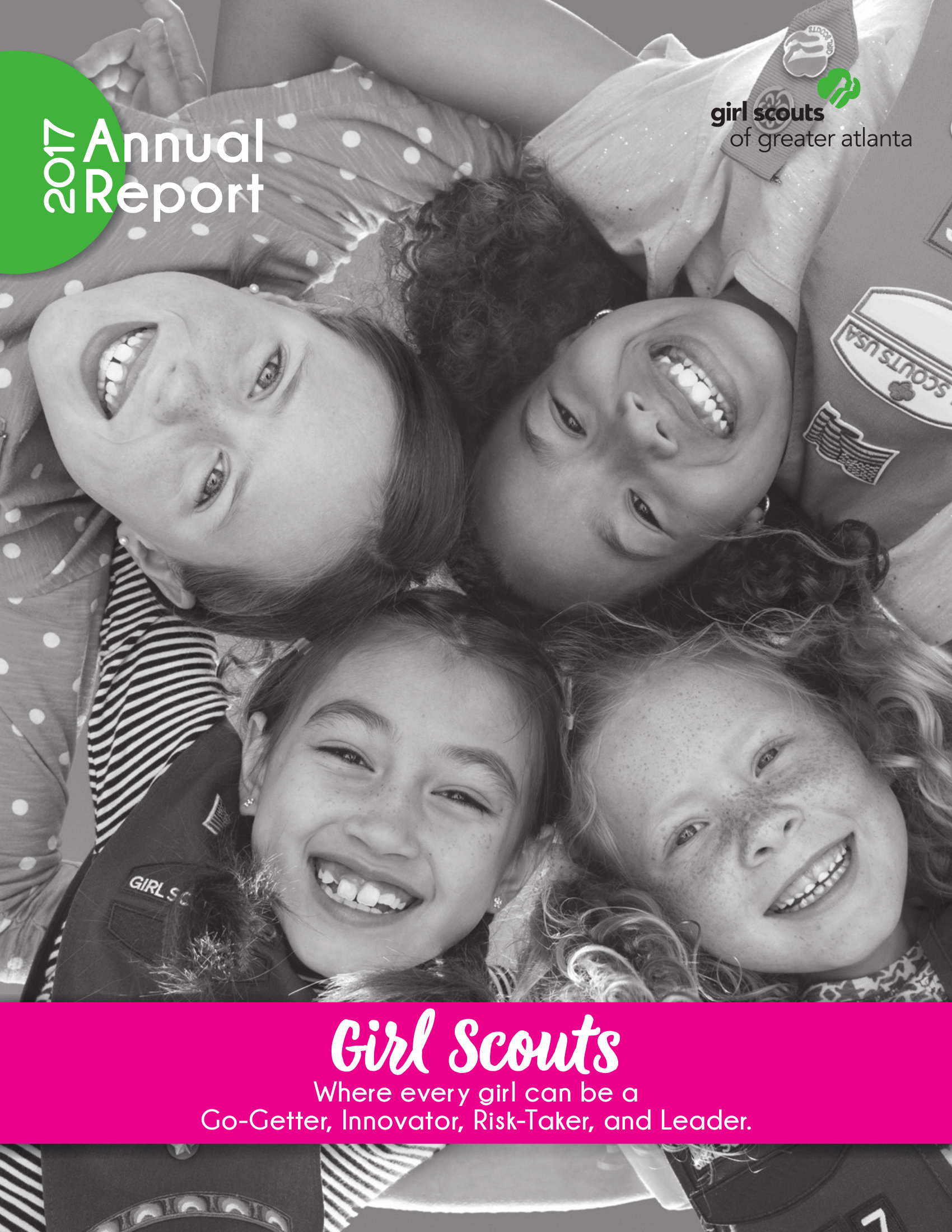 | Company Name: | Girl Scouts of Greater Atlanta  | | Company Web Site: | GirlScoutsATL.org | | Annual Revenue: | $10 - $100 million | | Employee Base: | 100 - 1,000 Employees | | Core Industry: | Non-Profits | | Type of Report: | Annual Report | | Industry Award Garnered: | Silver | | | | Judging Results | | First Impression: | | | Report Cover: | | | Letter to Shareholders: | | | Report Narrative: | | | Report Financials: | | | Creativity: | | | Message Clarity: | | | Information Accessibility: | | | Total Score: | |