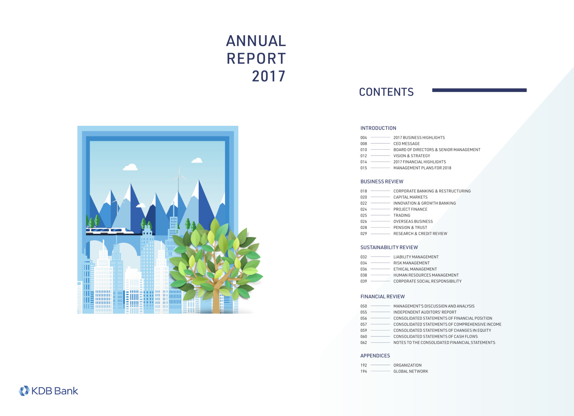 | Company/Agency Name: | KDB Bank / Lucre Inc. | | Company/Agency Web Site: | www.kdb.co.kr / www.lucrebeyond.com | | Annual Revenue: | $1 - $10 billion | | Employee Base: | 1,000 - 10,000 Employees | | Core Industry: | Financials — Diversified Services | | Type of Report: | Annual Report | | Title/Theme: | "KDB, the Leader of Innovative Growth" | | Regional Top 80 Rank: | 3 (Asia-Pacific Region) | | Country-Based Honors: | Top 20 Korean Reports | | Industry Award Garnered: | Platinum | | Top 100 Worldwide Rank: | 9 | | | | Judging Results | | First Impression: | | | Report Cover: | | | Letter to Shareholders: | | | Report Narrative: | | | Report Financials: | | | Creativity: | | | Message Clarity: | | | Information Accessibility: | | | Total Score: | |