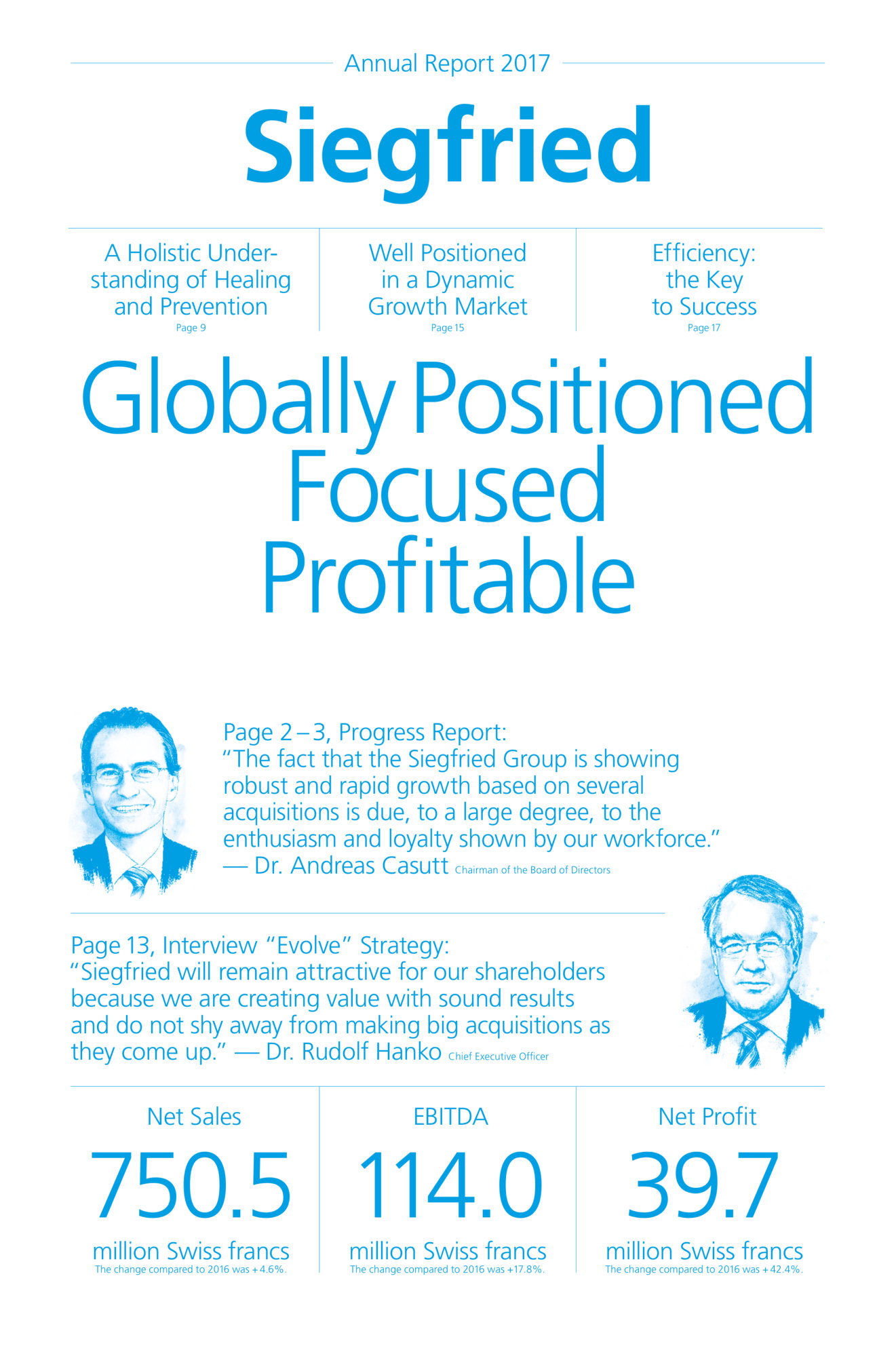 | Company/Agency Name: | Siegfried / Hej Gmbh | | Company/Agency Web Site: | siegfried.ch / hej.ch | | Annual Revenue: | $100 million - $1 billion | | Employee Base: | 1,000 - 10,000 employees | | Core Industry: | Chemicals | | Type of Report: | Annual Report | | Title/Theme: | Globally Positioned – Focused - Profitable | | Regional Top 80 Rank: | 28 (Europe/Middle East/Africa Region) | | Country-Based Honors: | Top 5 Swiss Reports | | Industry Award Garnered: | Gold | | Top 100 Worldwide Rank: | 86 | | | | Judging Results | | First Impression: | | | Report Cover: | | | Letter to Shareholders: | | | Report Narrative: | | | Report Financials: | | | Creativity: | | | Message Clarity: | | | Information Accessibility: | | | Total Score: | |