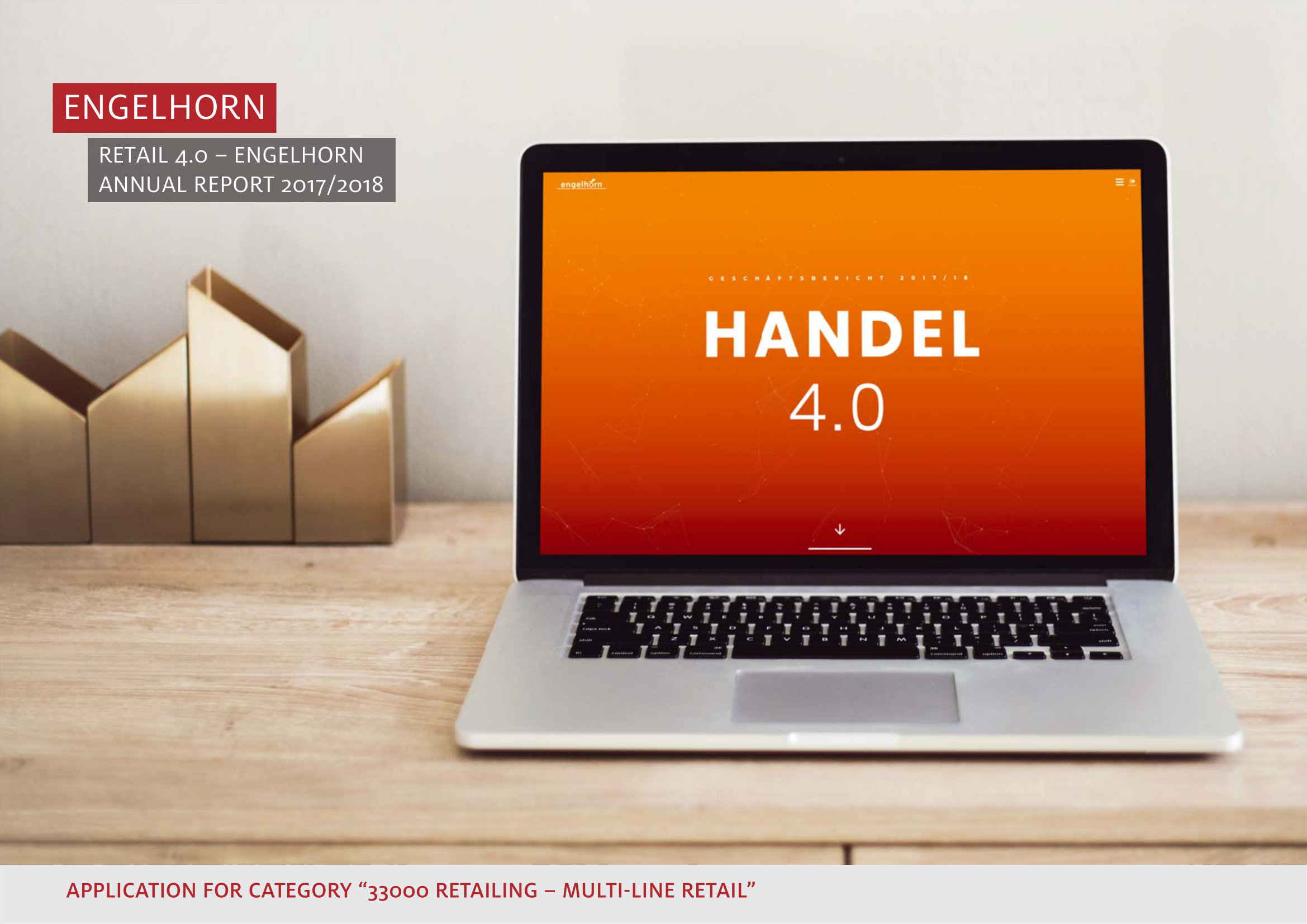 Entry Highlights: View Competition Class Performance | Company/Agency Name: | Engelhorn KGaA  / Publik. Agentur für Kommunikation GmbH | | Company/Agency Web Site: | www.engelhorn.de / www.agentur-publik.de | | Project Name: | The Handel 4.0 - Engelhorn Geschäftsbericht 2017/2018 | | Competition Category: | Report: Online Report | | Annual Revenue: | $100 million - $1 billion | | Employee Base: | 1,000 - 10,000 employees | | Award Garnered: | Gold | | Top 100 Rank: | 91 | | | | Judging Results | | First Impression: | | | Overall Narrative: | | | Overall Visual Design: | | | Creativity: | | | Message Clarity: | | | Perceived Relevance: | | | Total Score: | |